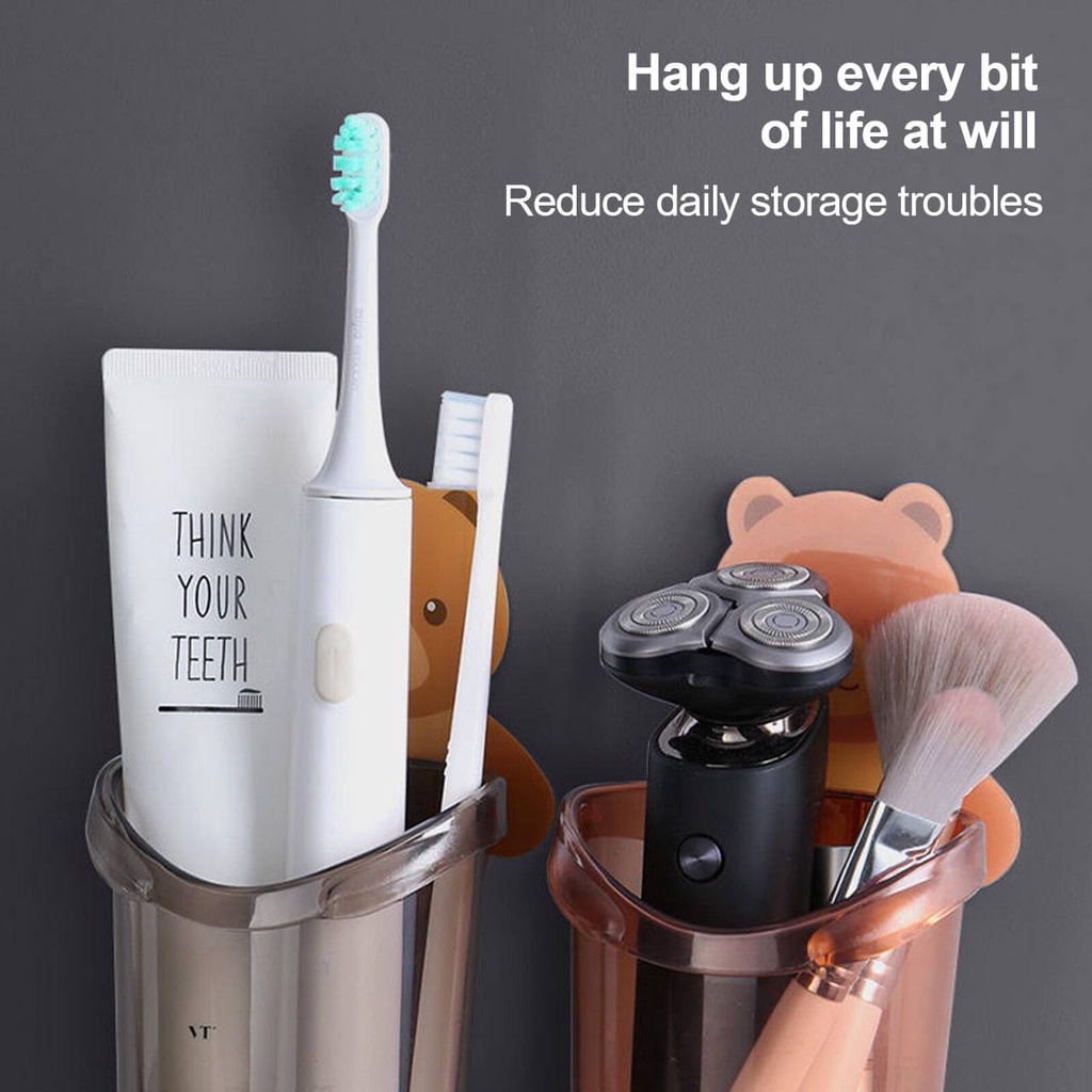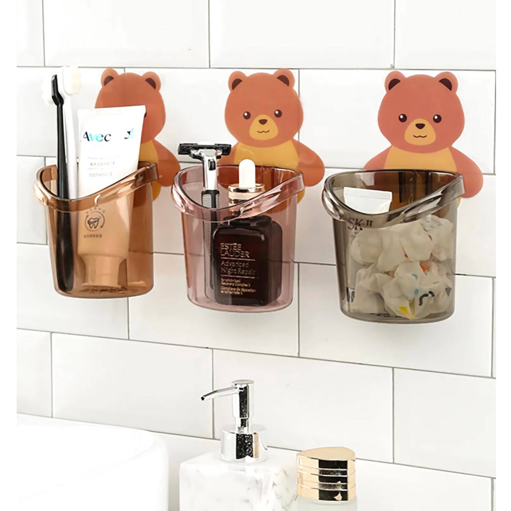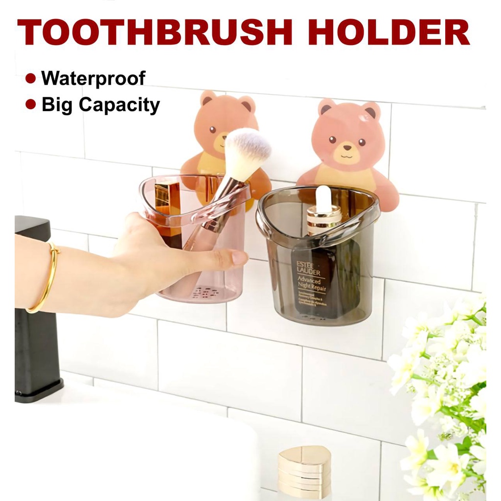 Raja Grosir | Gantungan Tempel Rak Tempat Sikat Gigi / Dispenser Bulet Gambar Beruang | Perlengkapan Mandi [100310]