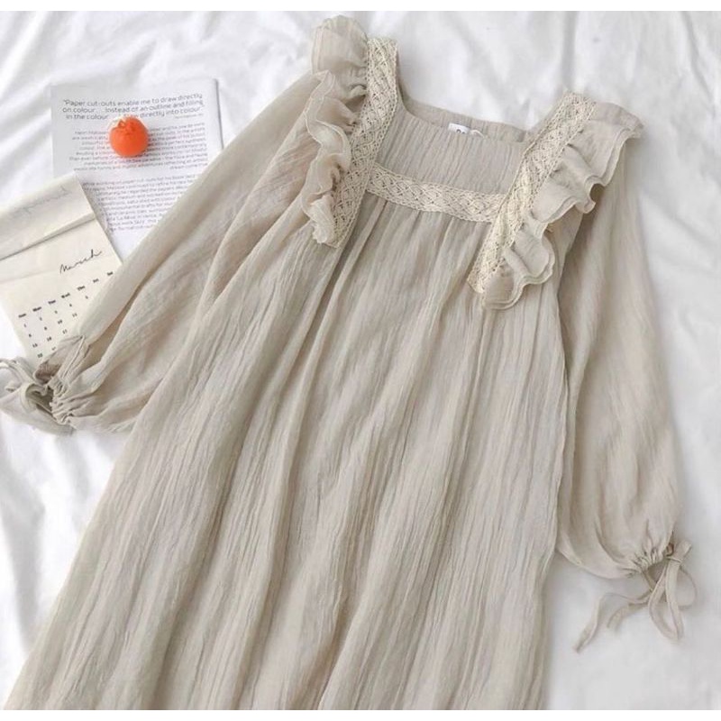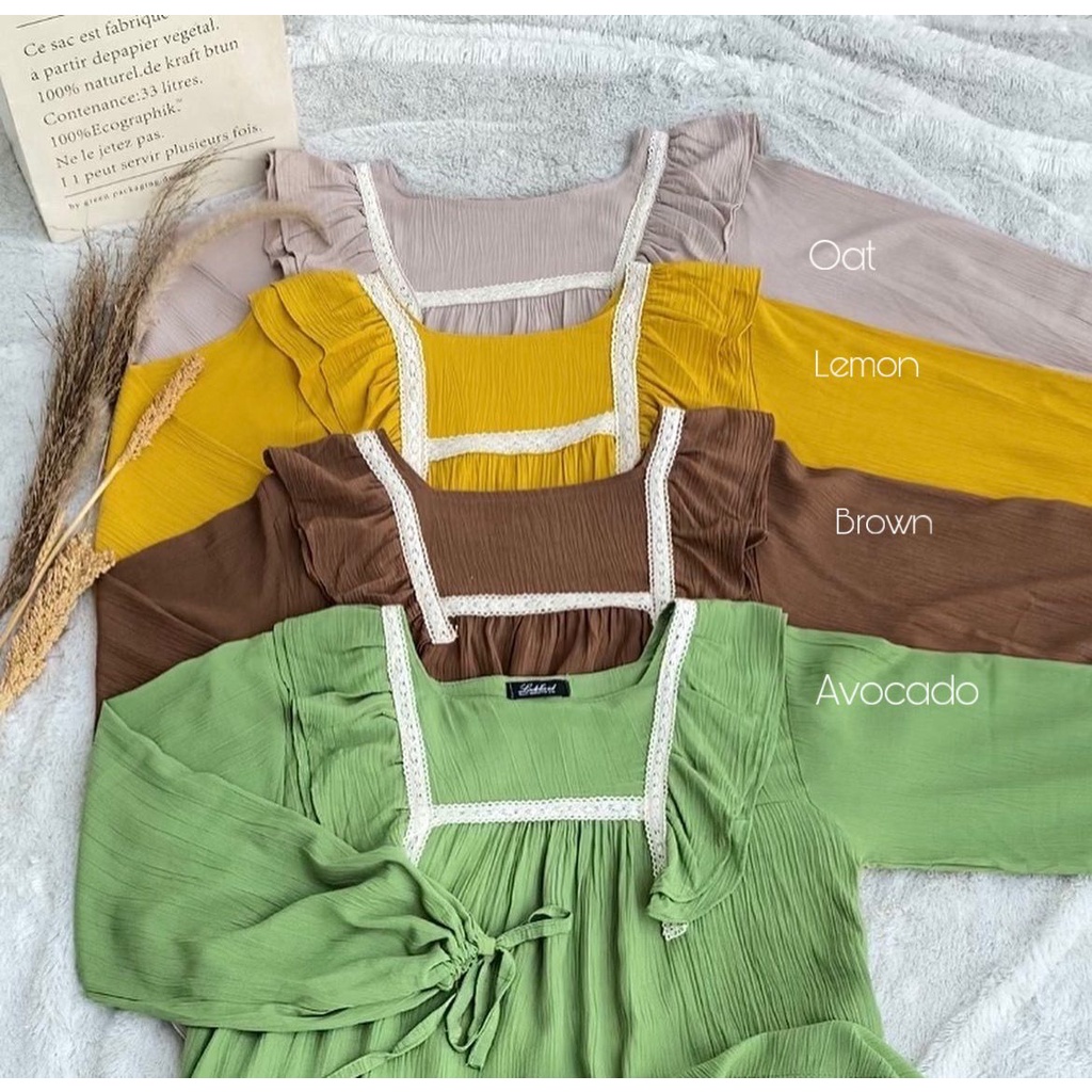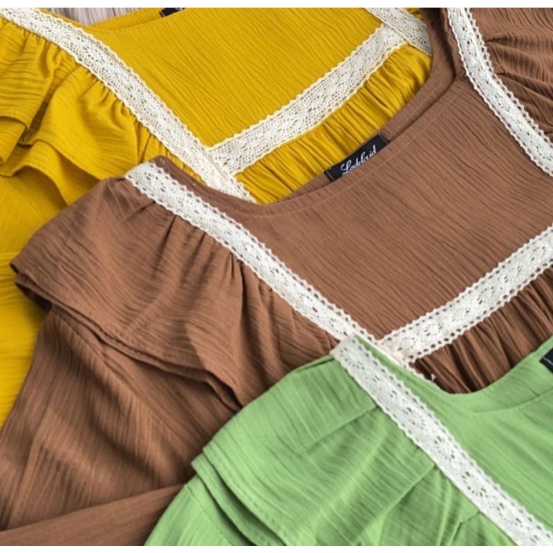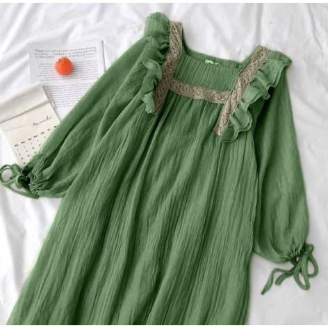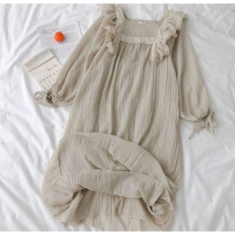 Nessa Dress Korean Style Pakaian Wanita Midi Dress Premium Rayon Crinkle mix Renda Import