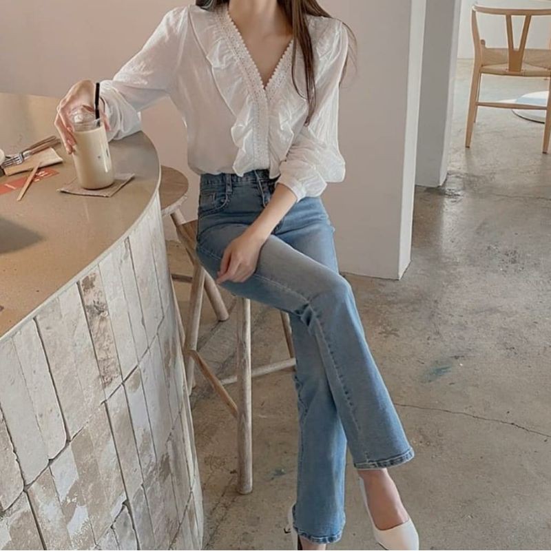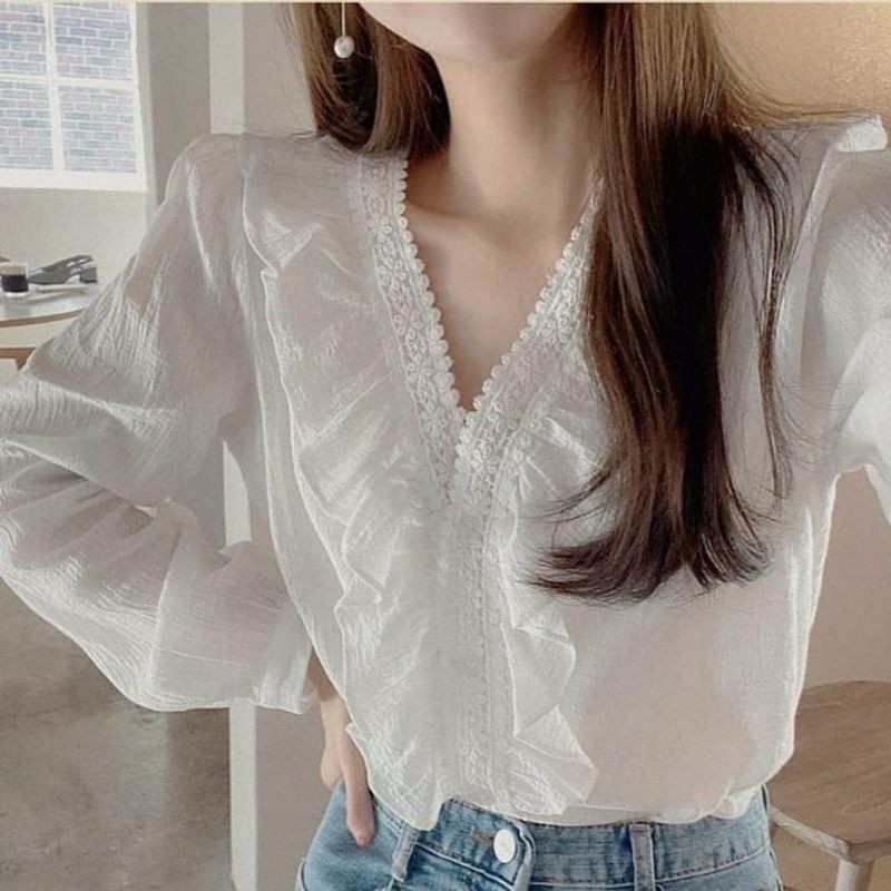 Seona Blouse Atasan Wanita Korean Style Crinkle Import mix Lace Outfit Casual