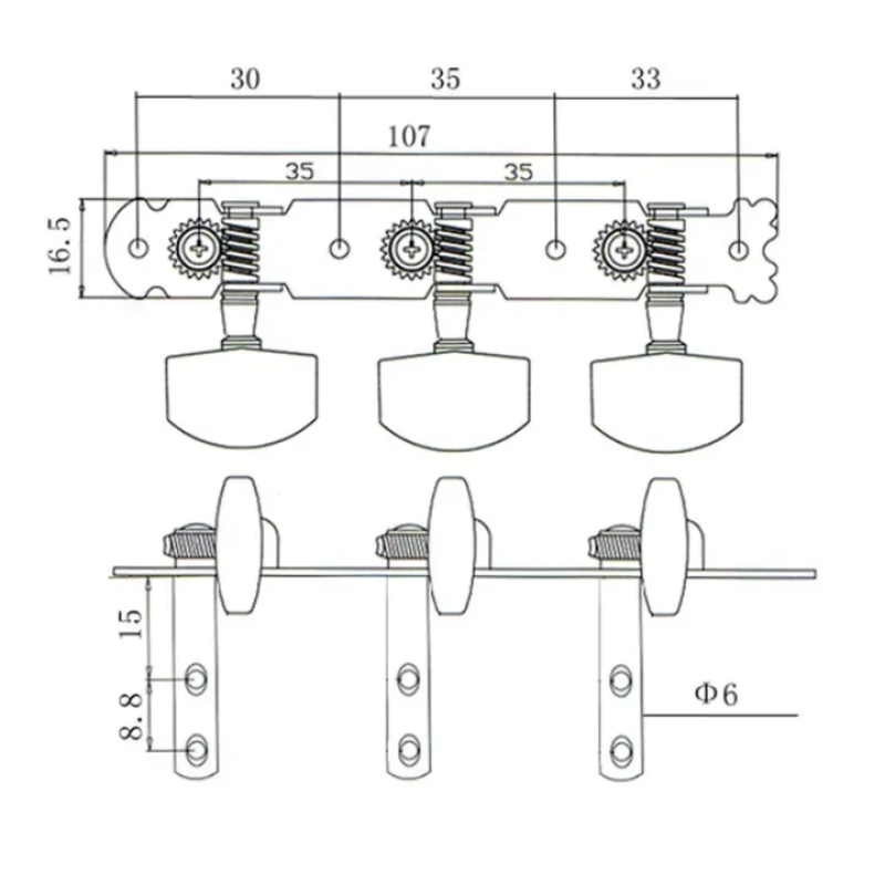 PLAYOU Dryer Gitar Akustik 3R 3L Tuning Peg tuning peg gitar, putaran gitar akustik bahan stainless satu set