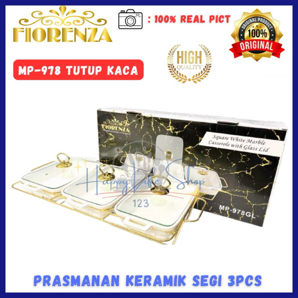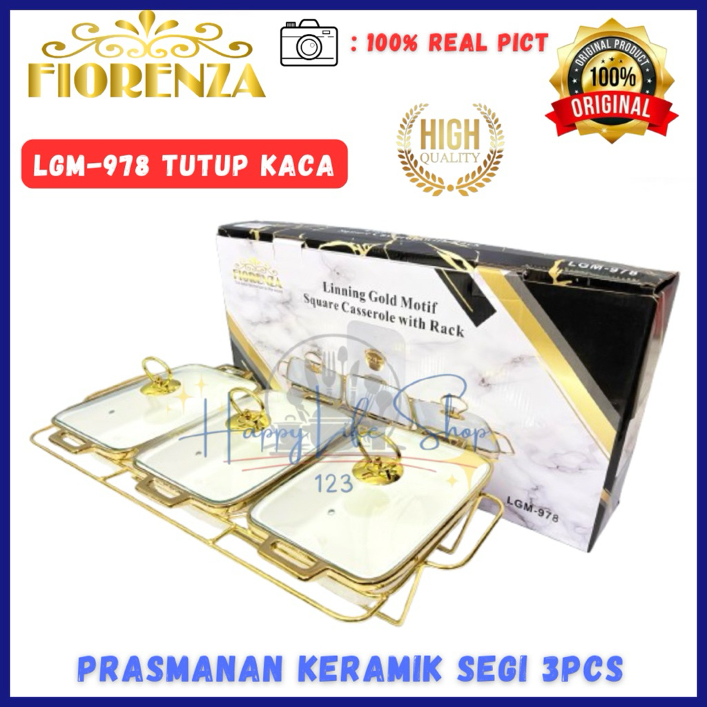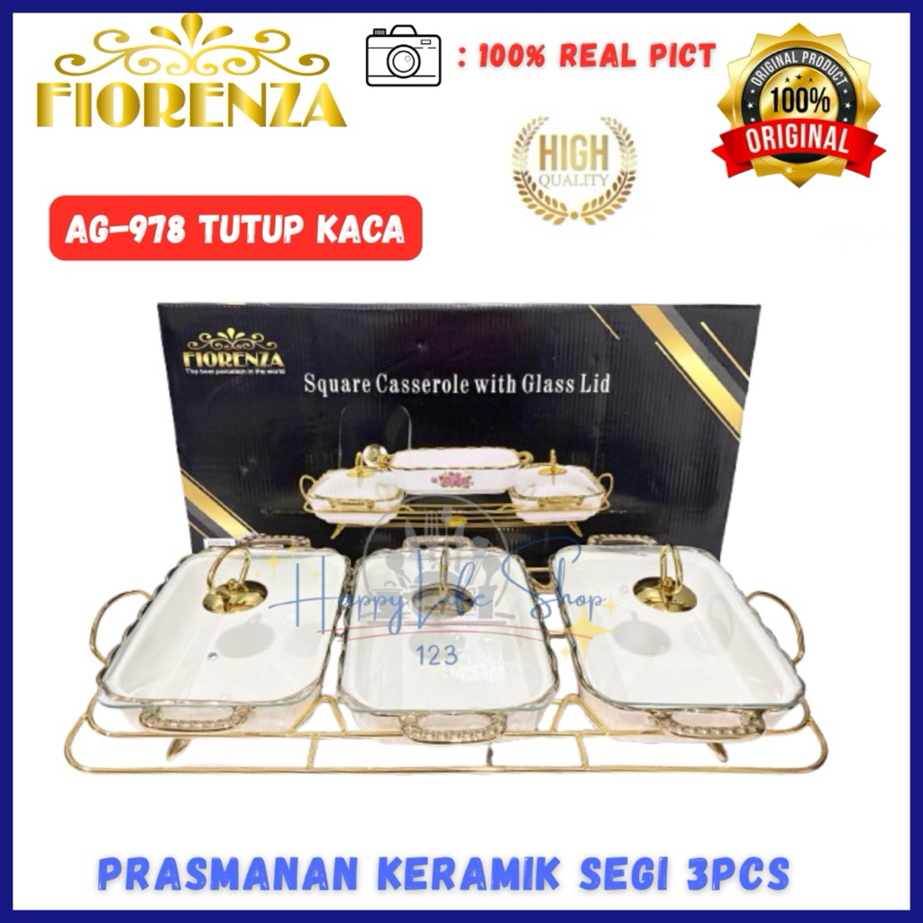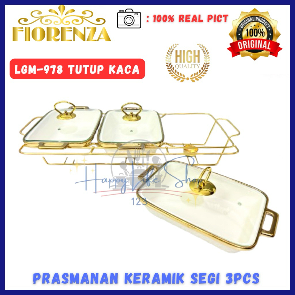 Prasmanan Set Segi Isi 3 + Tutup + Rak MP 978 GL Dan LGM 978 GL / Prasmanan Keramik FIORENZA / FIORENZA Prasmanan Segi 3pcs