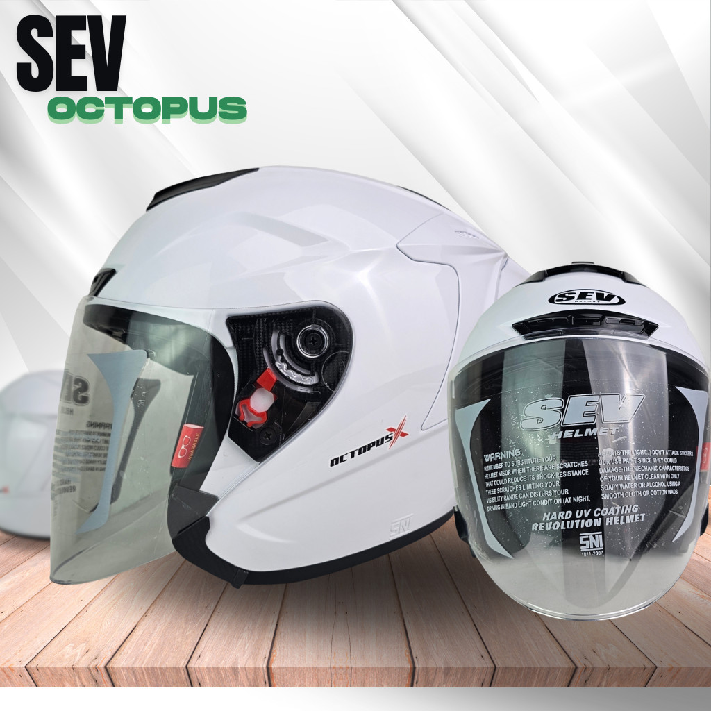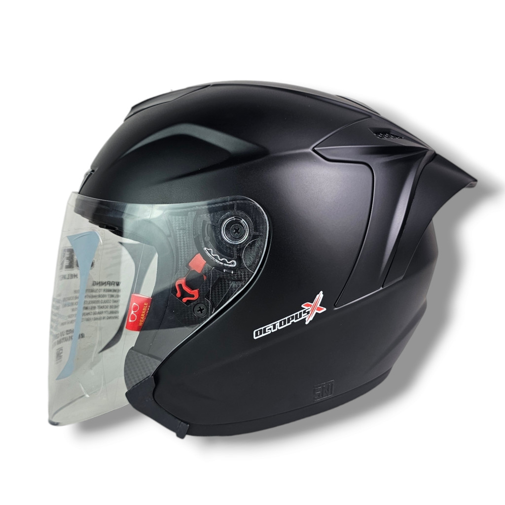 Helm Sev Octopus Solid Black Doff - Helm Half Face Dewasa SNI Murah - Hitam Dop