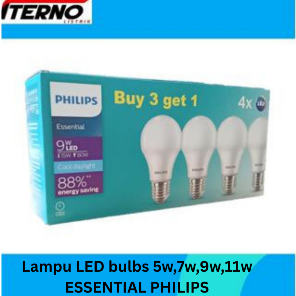 Lampu Philips LED bulbs 5W 7W 9W 11W Essential E27 6500K Putih