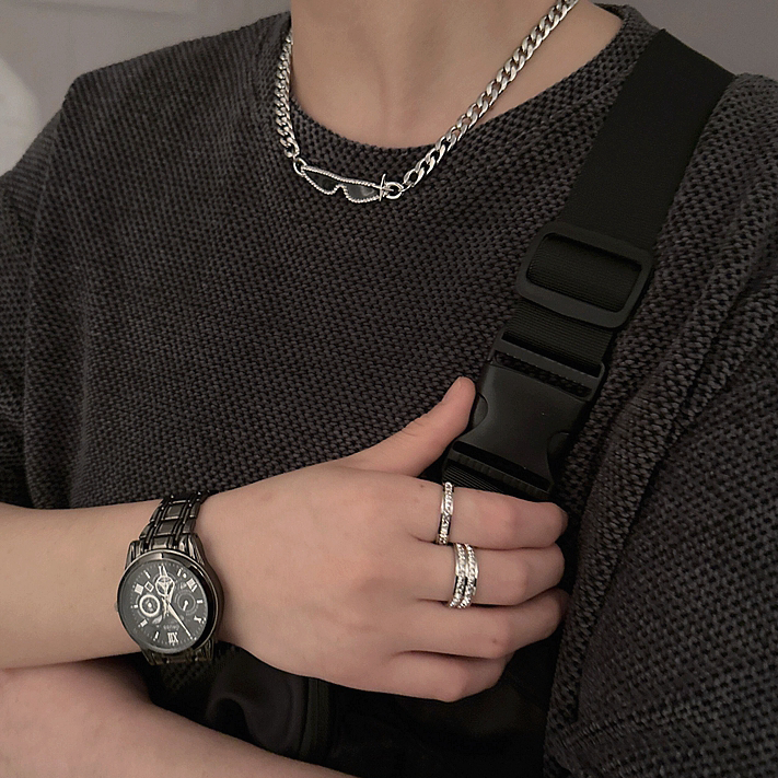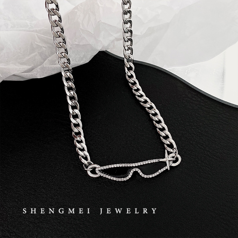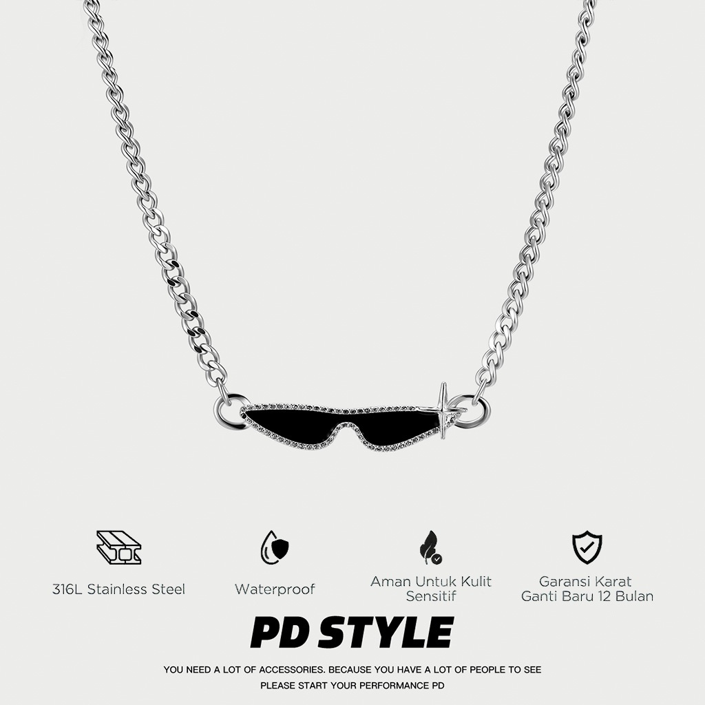 PD STYLE-Kalung Gaya Kacamata Hitam,Kalung liontin trendi titanium, desain unik dengan rantai tulang ular pendek, cocok untuk pria dan wanita bergaya santai dan berkelas.