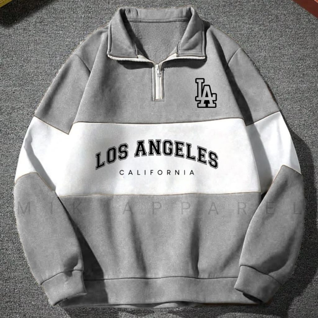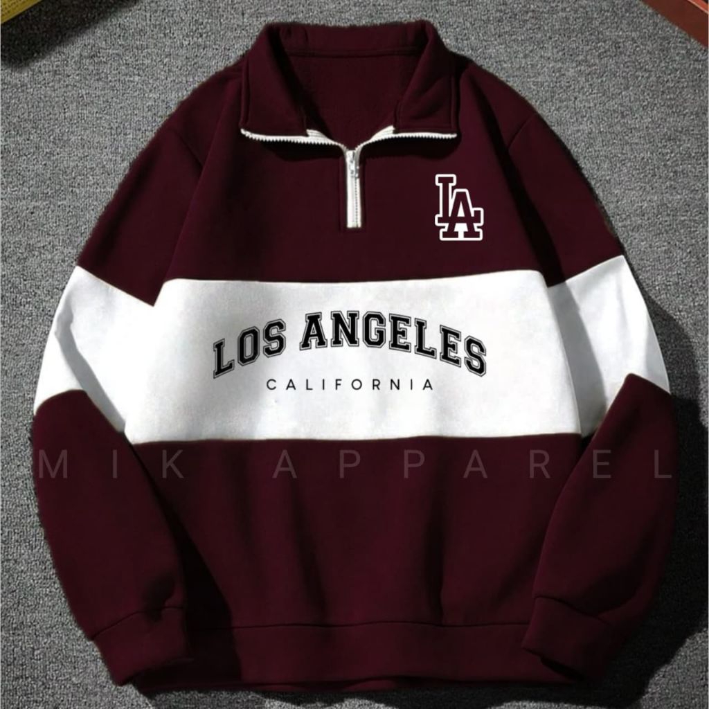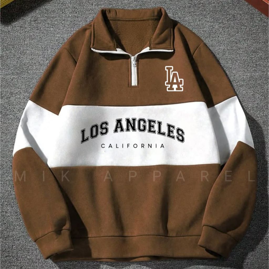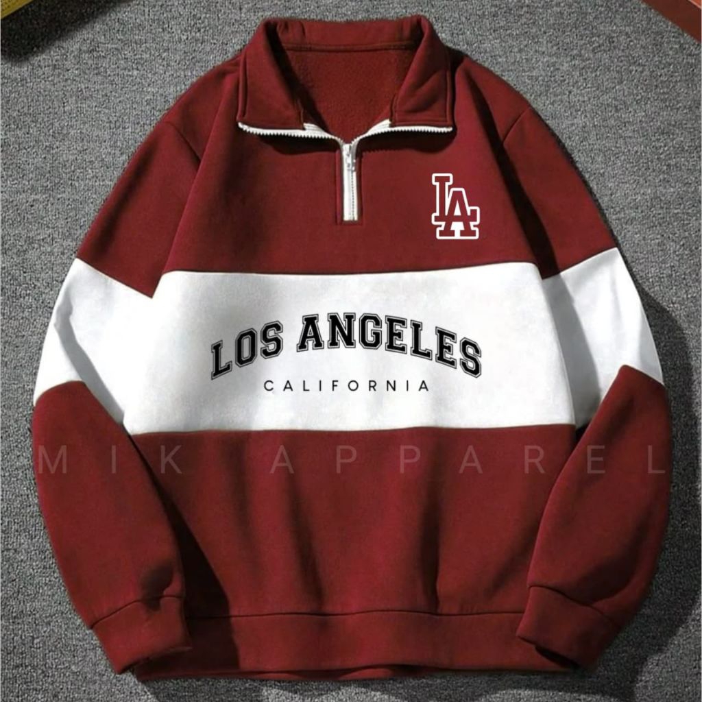 Sweater Rugby Half Zipper Terbaru Sweater Kerah Crewneck Los Angeles Pria Wanita Fleece 280gms Unisex