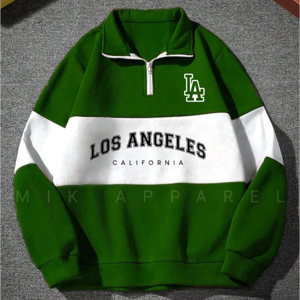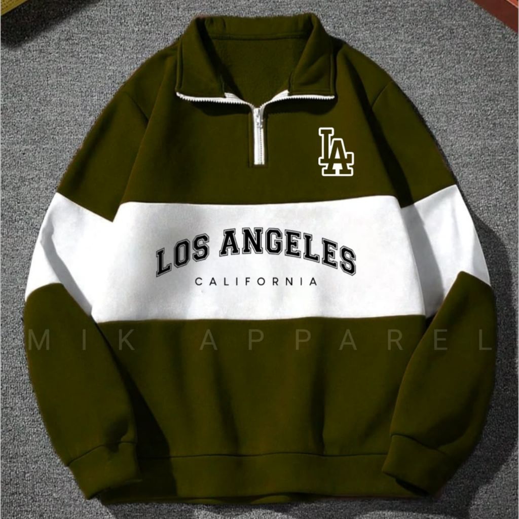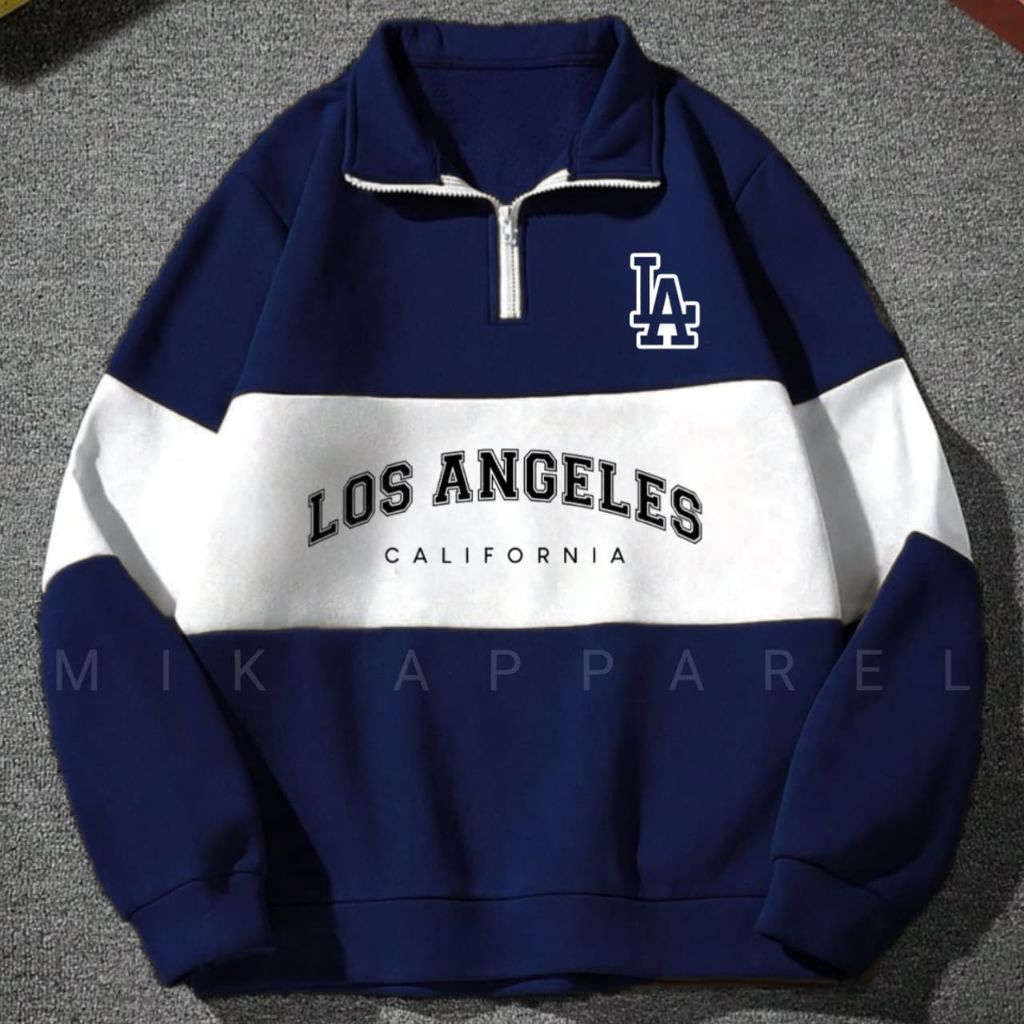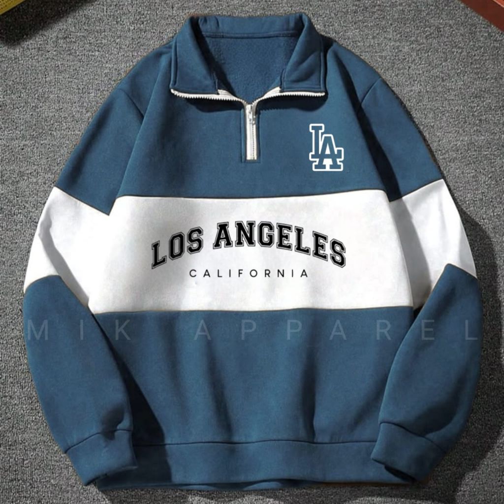 Sweater Rugby Half Zipper Terbaru Sweater Kerah Crewneck Los Angeles Pria Wanita Fleece 280gms Unisex