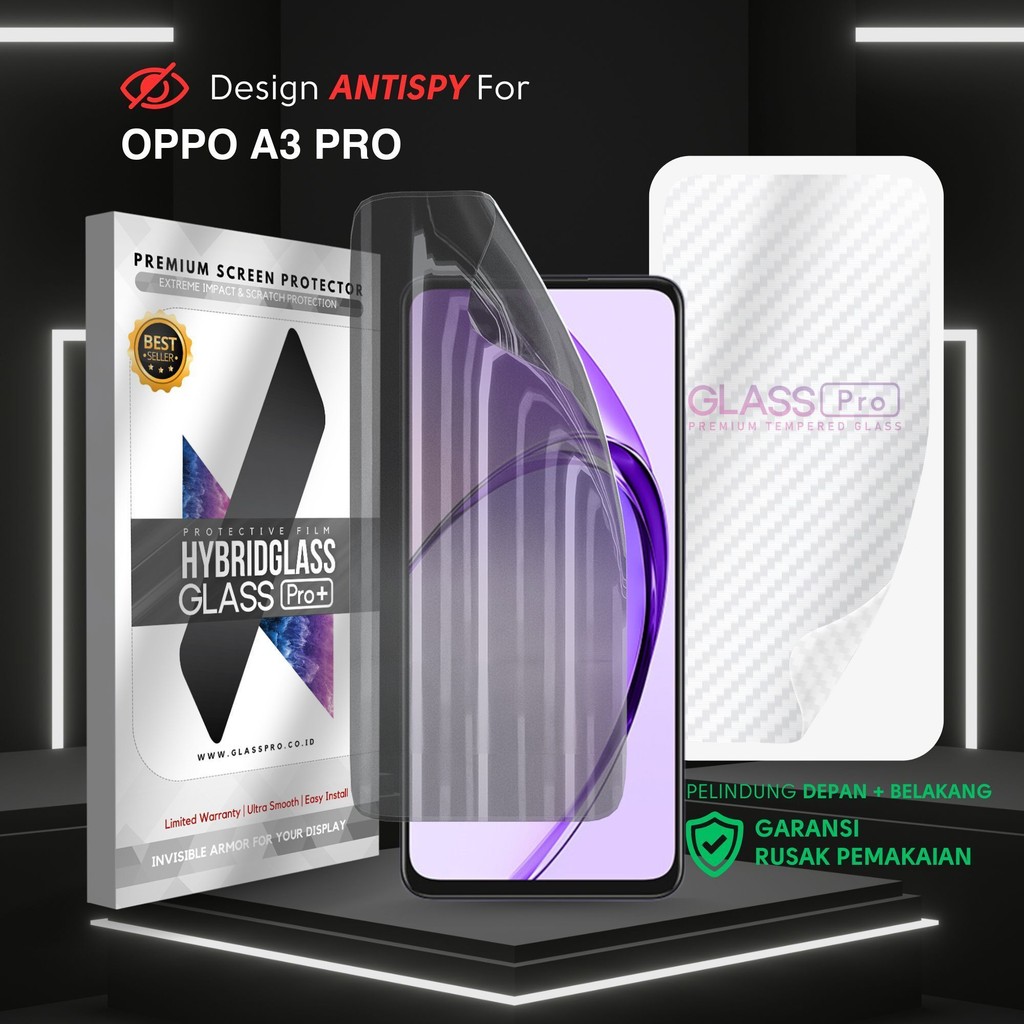 Hybrid Glass Premium Anti Gores Hydrogel Anti Spy Oppo A3 Pro 4G Full Cover Screen Protector Glass Pro Not Tempered Glass Ready Semua Model