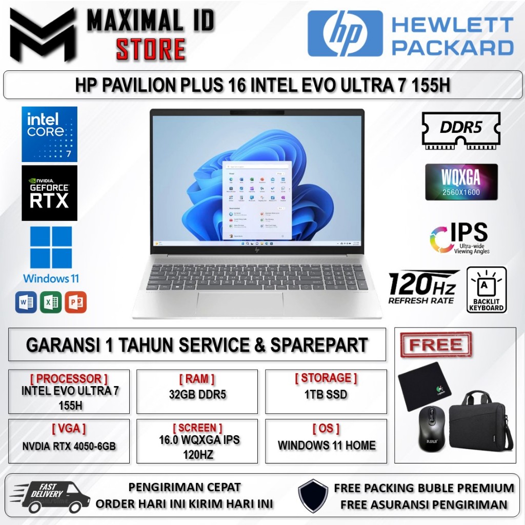 Laptop Hp Pavilion Plus 16 Intel Evo Ultra 7 155H Nvidia RTX4050-6GB Ram 32GB 2TB SSD 120HZ BL WIN11