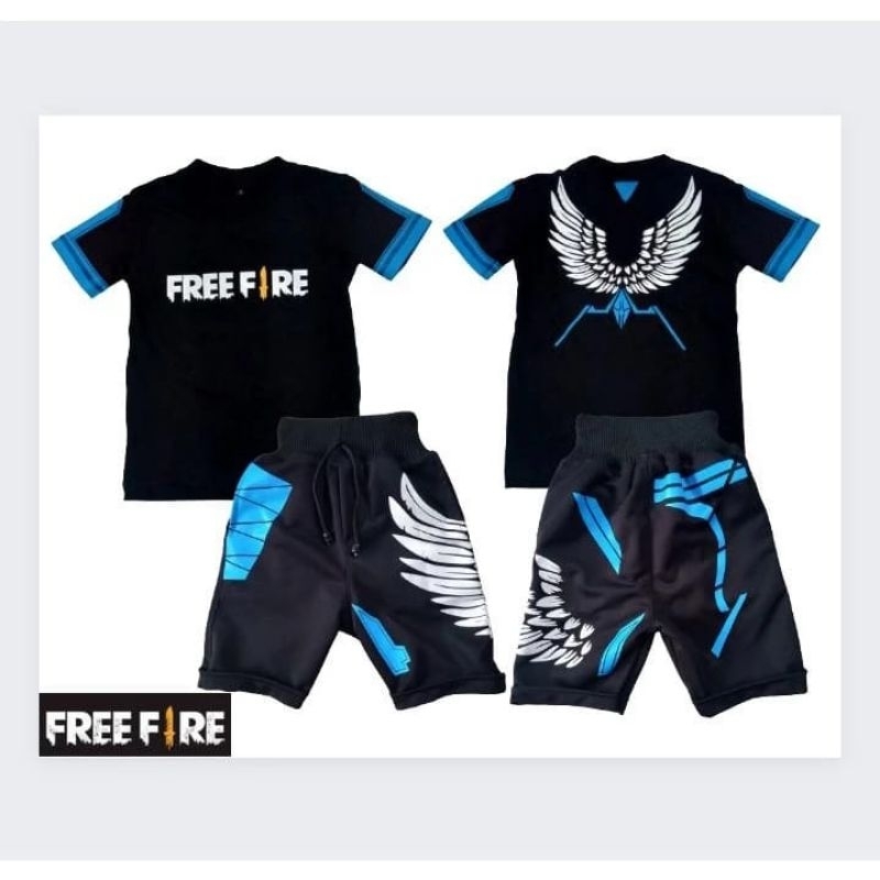 Fashion Stelan celana Pendek dan Kaos Anak Anak FF Angel Biru