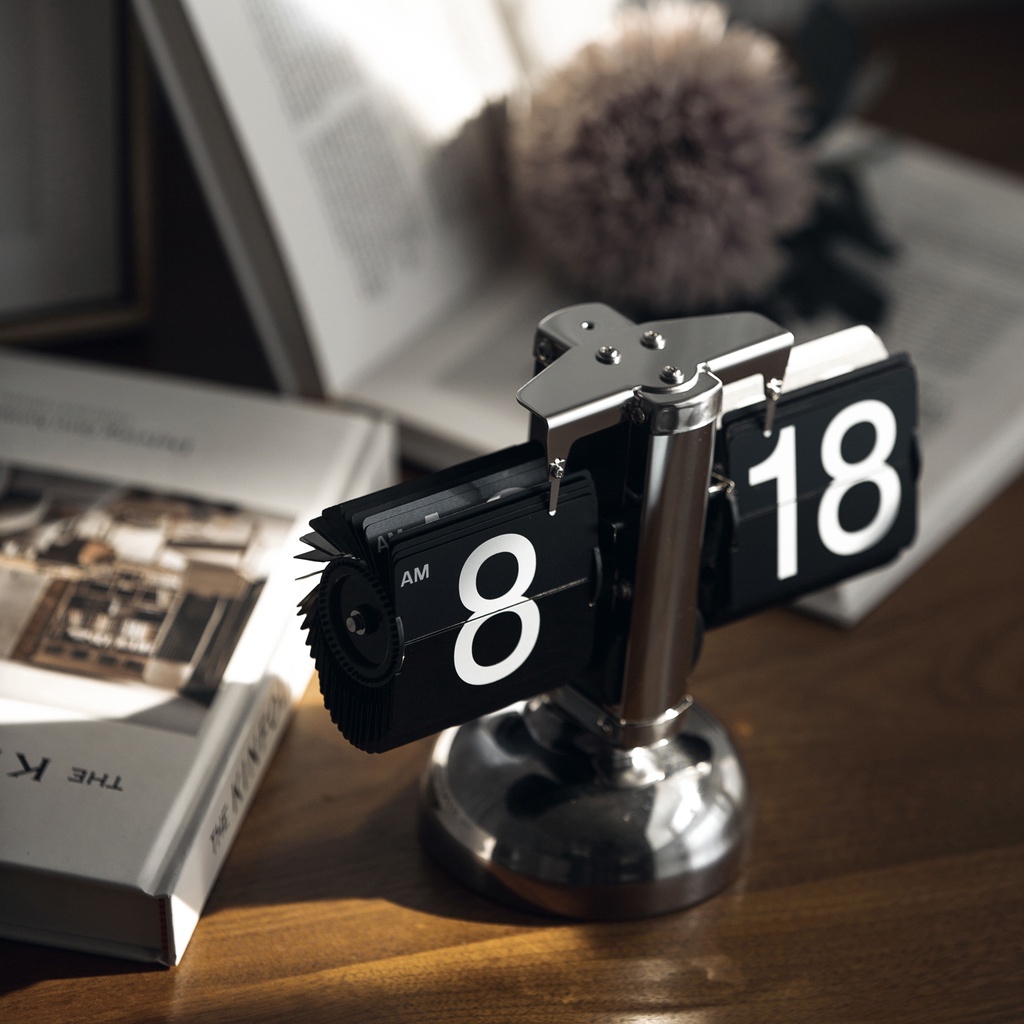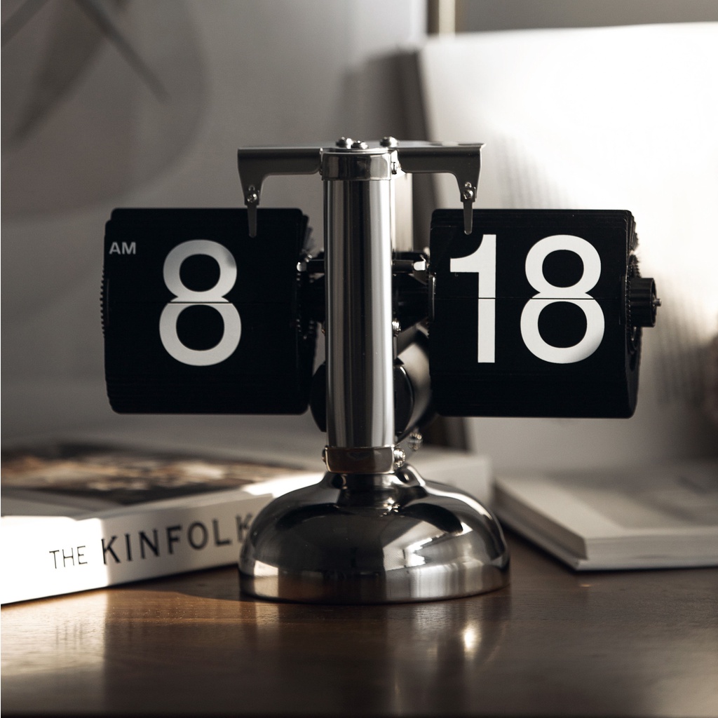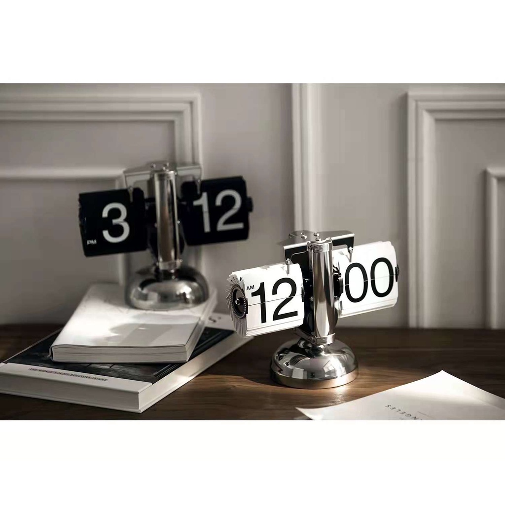 Jam Meja Retro Table Flip Clock Stainless Hiasan Kamar Kado Unik
