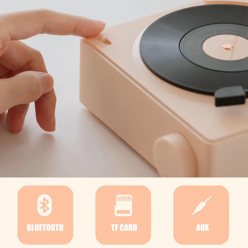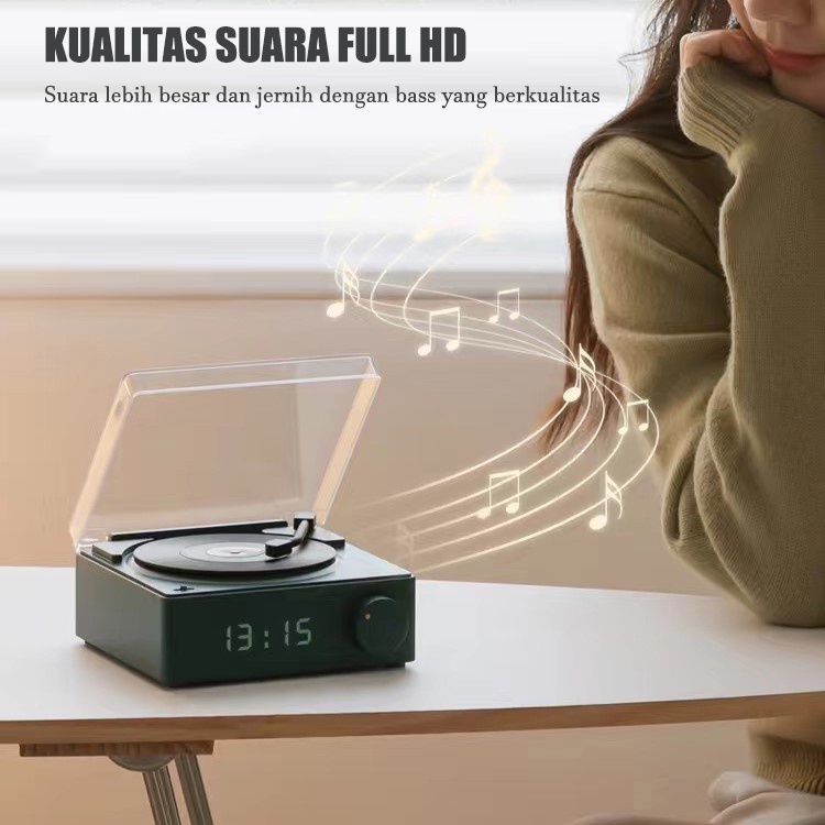 Round-X11 Atomic Speaker Bluetooth Jam Alarm Speaker Retro bentuk Vinyl Record Player