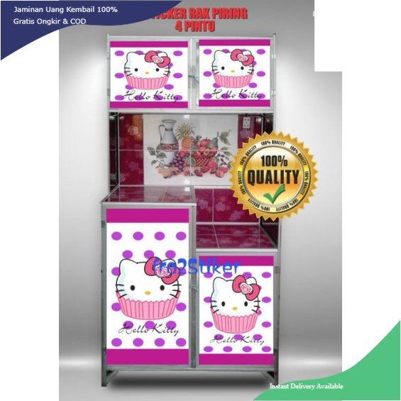 WALLPAPER STIKER LEMARI RAK PIRING 4 PINTU MOTIF HELLO KITTY BARU