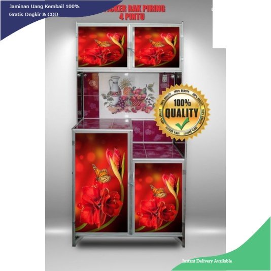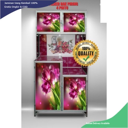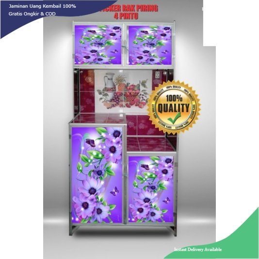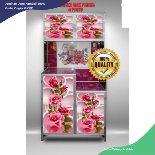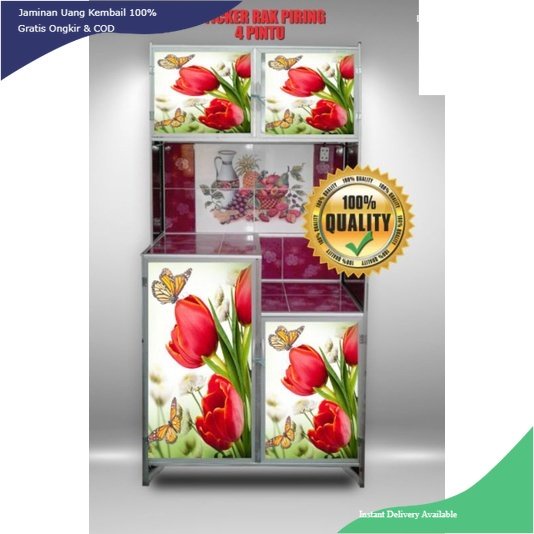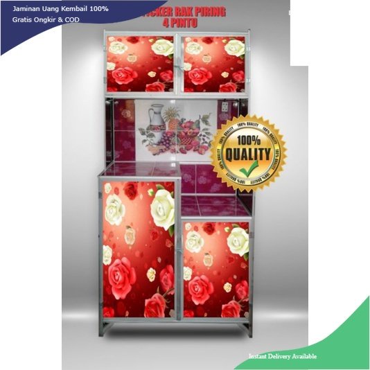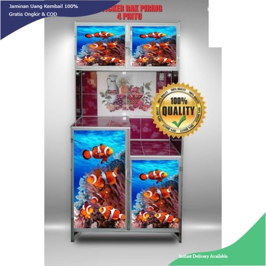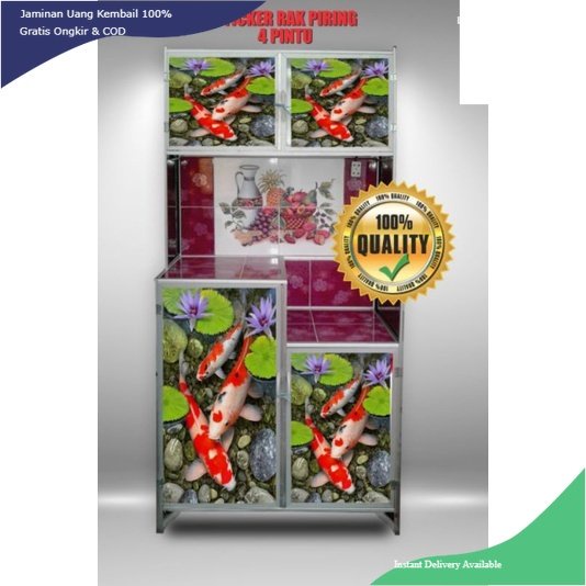 WALLPAPER STIKER LEMARI RAK PIRING 4 PINTU MOTIF IKAN & KEMBANG TERBARU