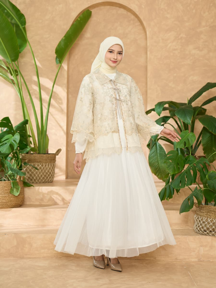 shebe design Safia Blouse Outer Atasan Lace Butter Yellow