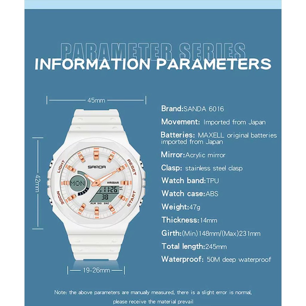 Jam Tangan Pria Water Resist Strap Ruber Analog Digital SANDA 6016