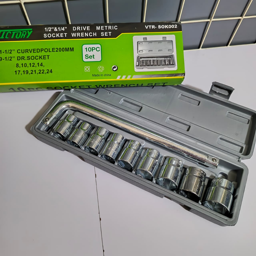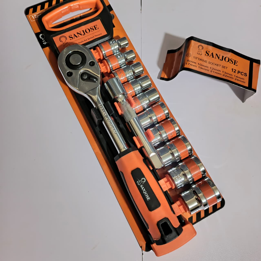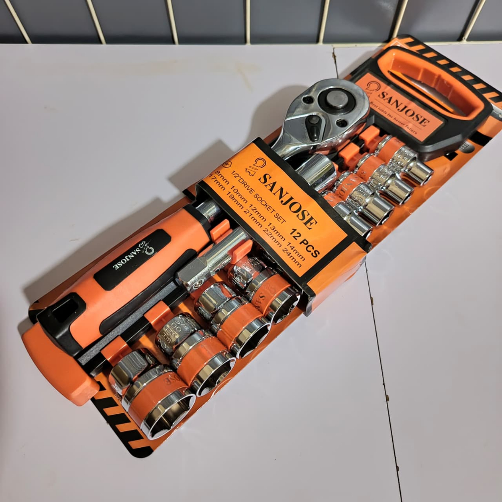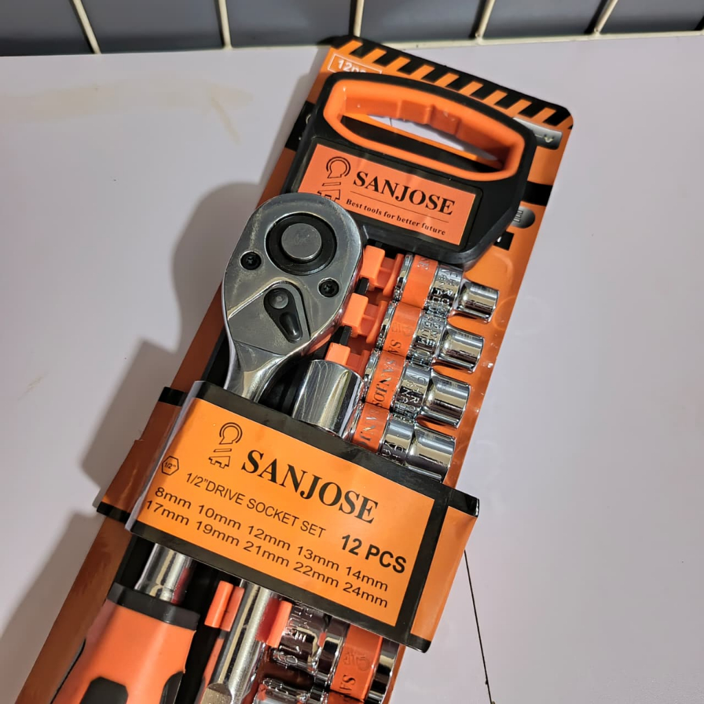 Kunci Shock Set 12 Pcs 8 Sampai 24 mm 1/2" Handle Ratchet Sanjose Sock Lengkap 8-24 Ready Sok Tekiro