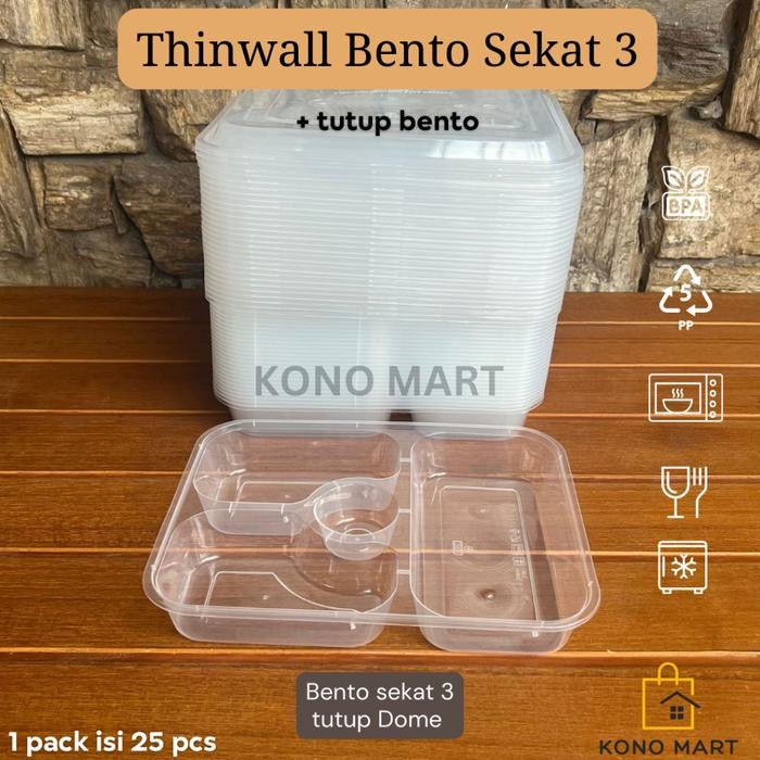 [Isi 25 Pcs] Thinwall Bento 3 Sekat Kotak Makan Plastik / Mika Catering Sekat 3 Bento / Thinwall
