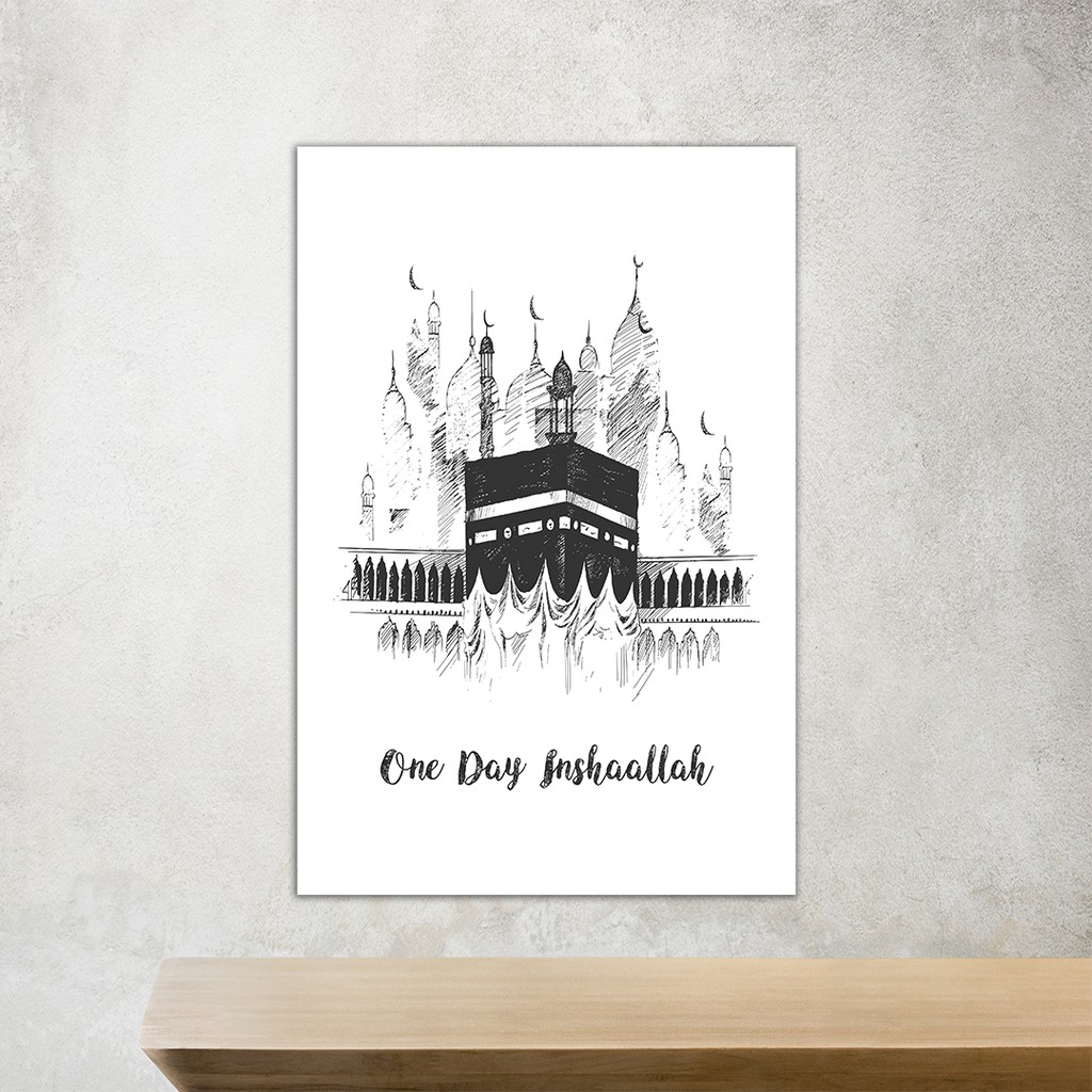 Hiasan Dinding Poster Kayu Wall Decor Kabah Ka'bah One Day Insha Allah V-02