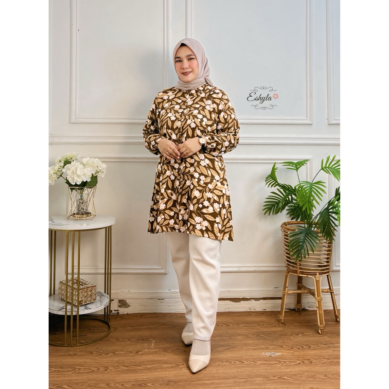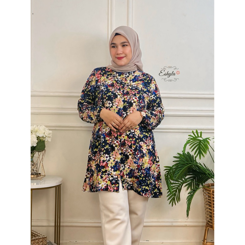 wajib punya eshyla tunik motif wanita terbaru katun rayon premium oversize jumbo