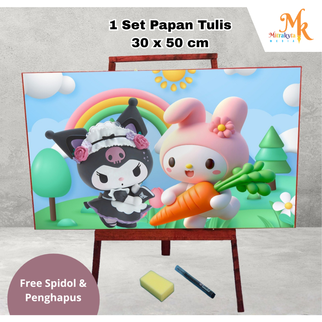 White Board Anak Karakter Kartun Lucu Ukuran 30x50 cm Papan Tulis Edukatif Gratis Spidol dan Penghapus