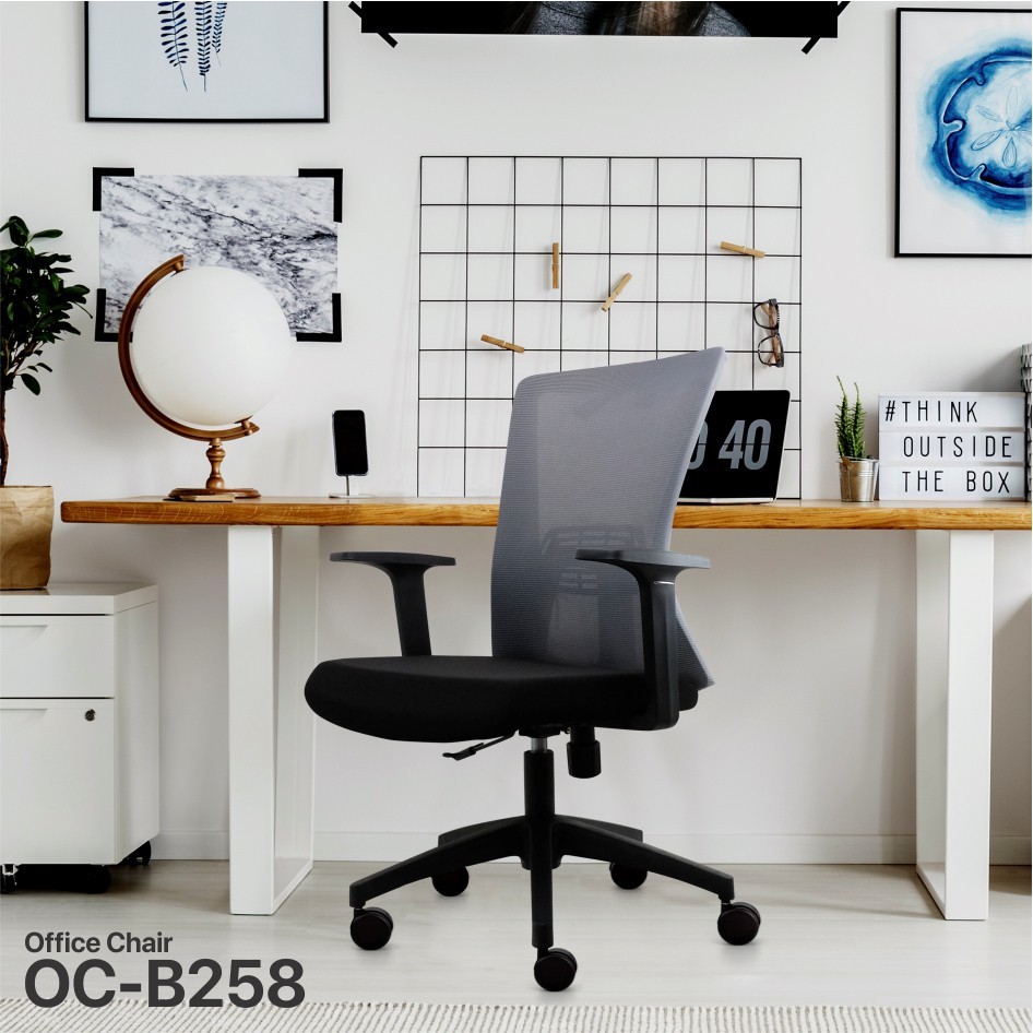 WorkStation by Fantech OCB258 Kursi Kantor Ergonomis White Premium Office Chair | Kursi Kerja Empuk Breathable Fabric Adjustable Height White