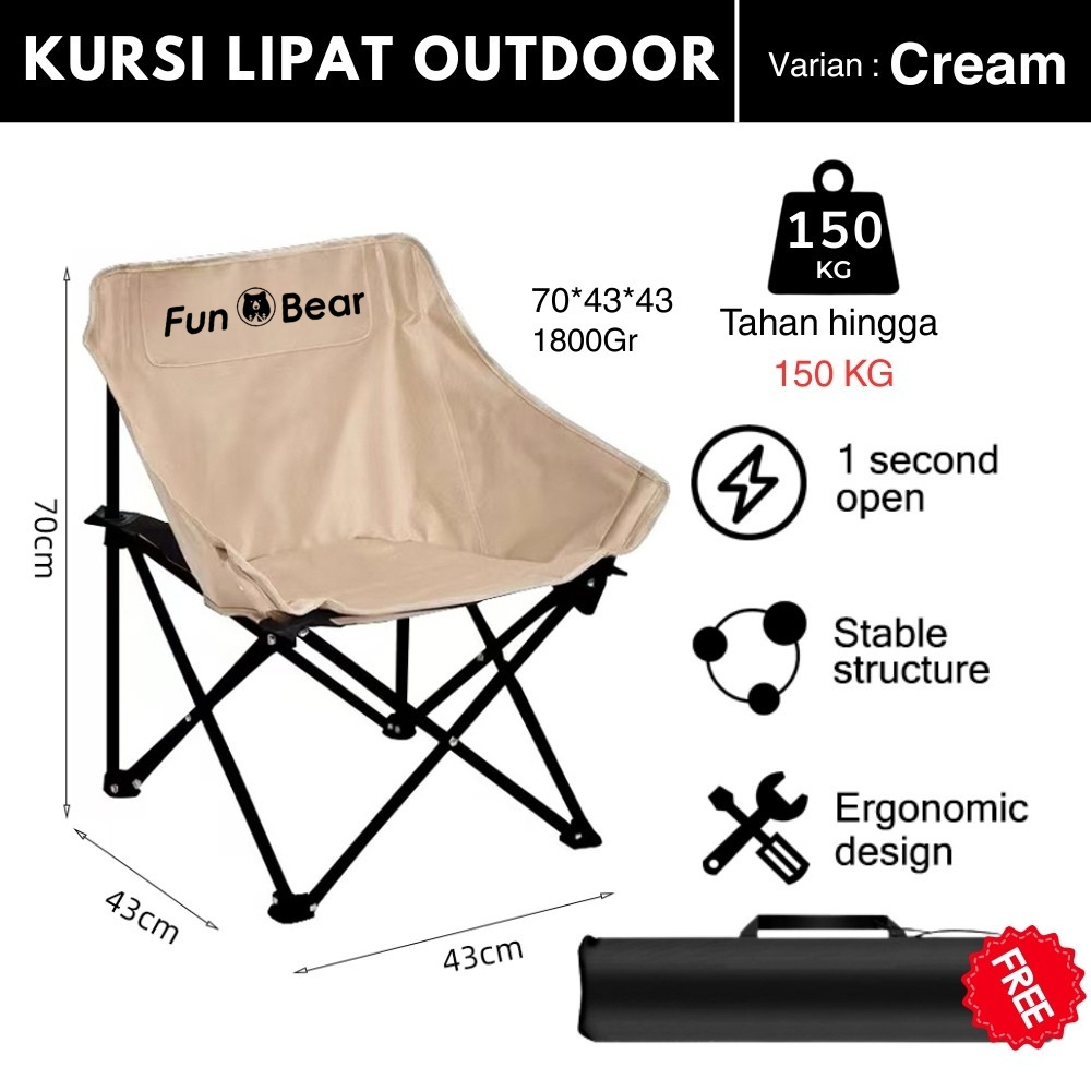 FunBear Kursi Camping Bulan Kursi Lipat Outdoor Tahan Sobek Beban 180kg Dan Tahan Air Tahan Aus