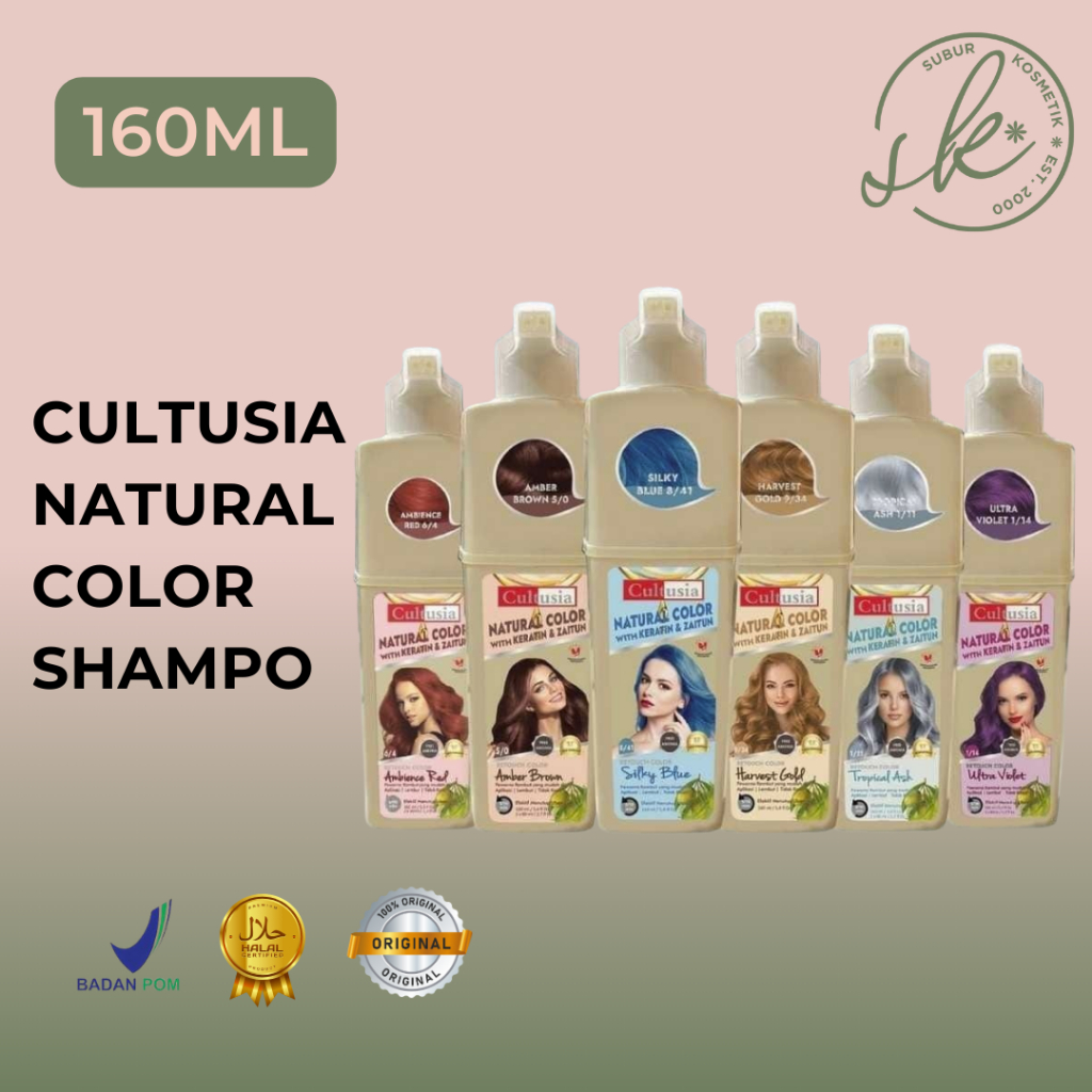 Cultusia Shampo Semir Penutup Uban KEMASAN BOTOL 160ml & Shampo Semir Natural Color 160ml Pewarna Rambut