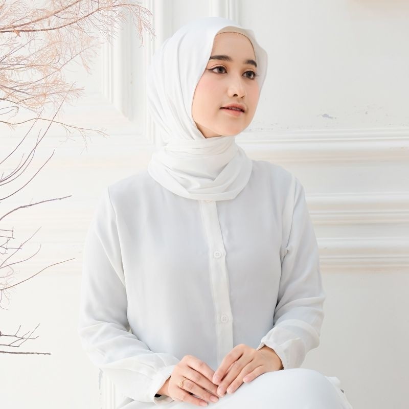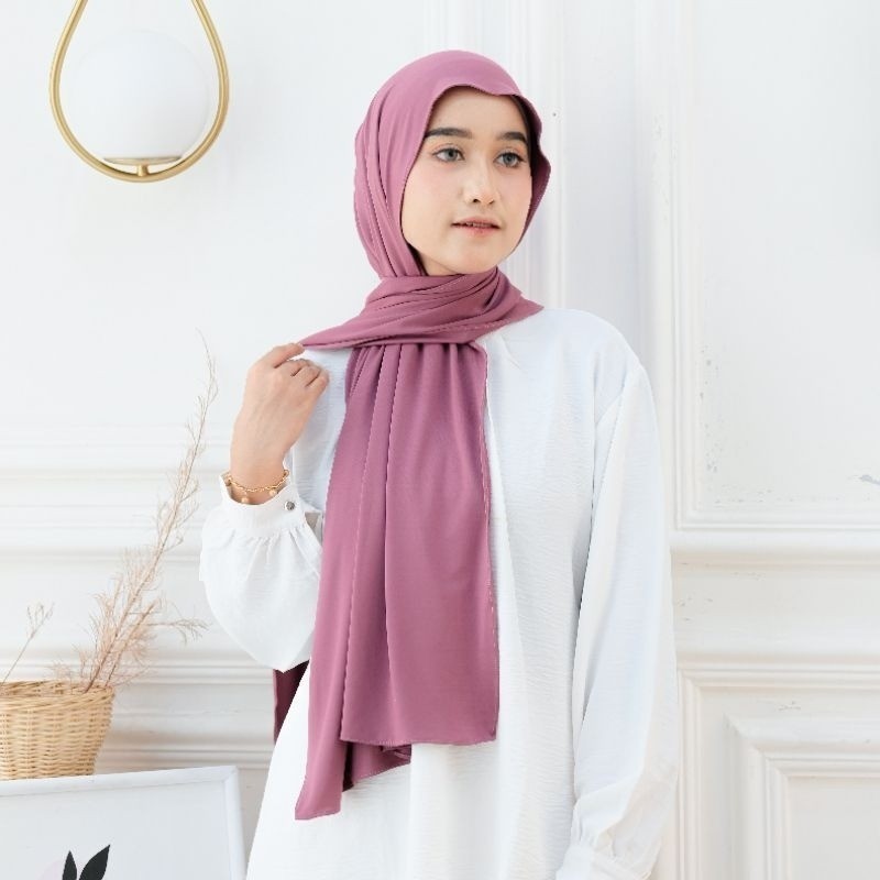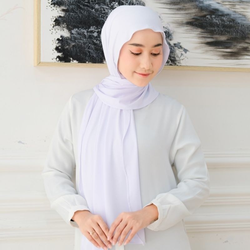 Kerudung Pashmina Kaos Meleyot Premium Tebal - Putih