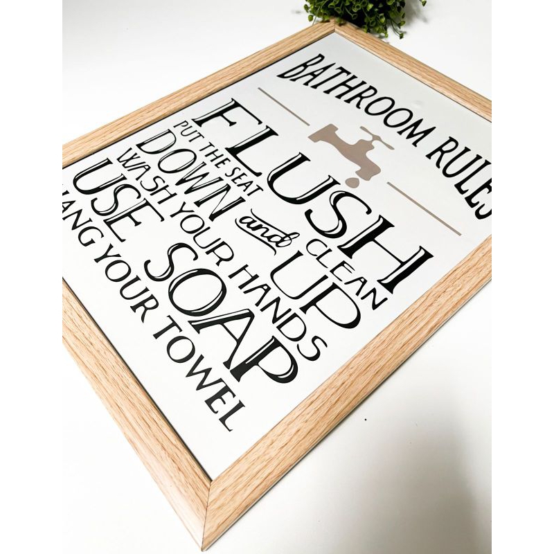 frame poster bathroom rules frame poster kamar mandi hiasan dinding kayu pinus solid hiasan dinding kmaar mandi aesthetic dekor kamar mandi