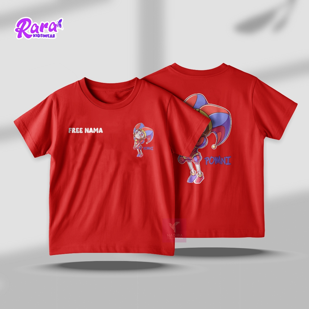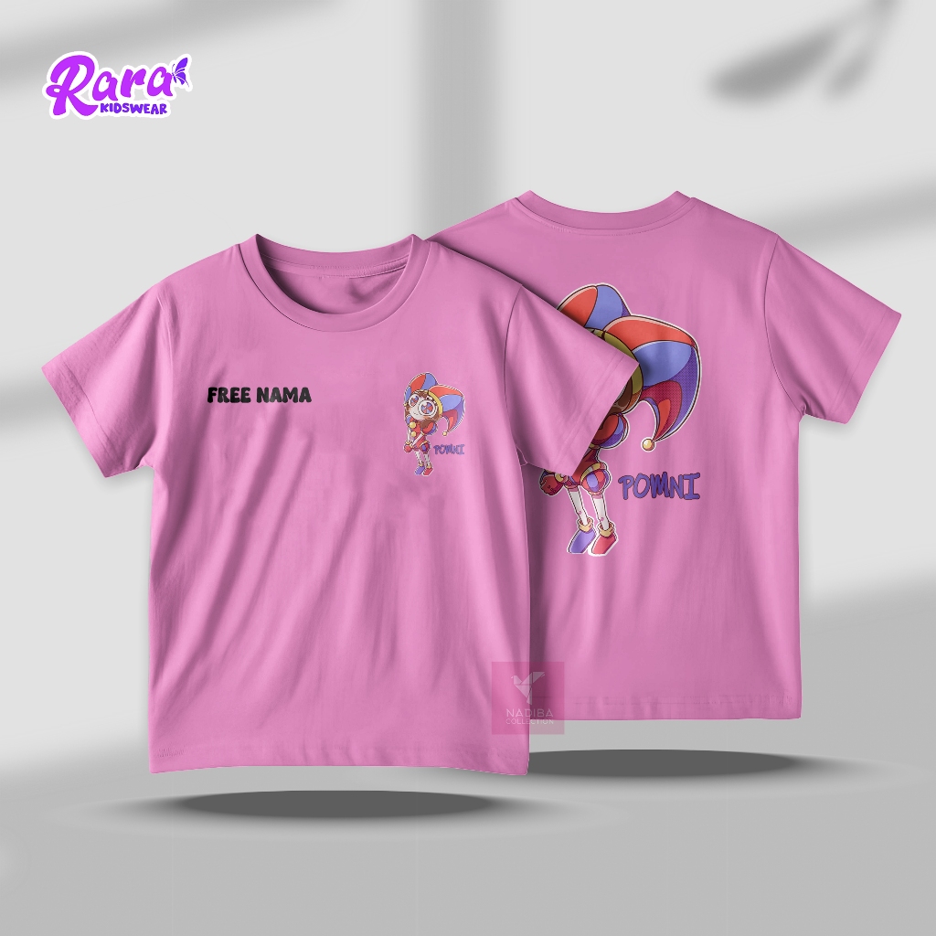 [Free Nama] Baju Kaos Oblong Anak Animasi The Amazing Digital Circus Karakter Pomni Usia 2-10 Tahun - T-Shirt Unisex Bahan Cotton Strech Hight Quality Premium