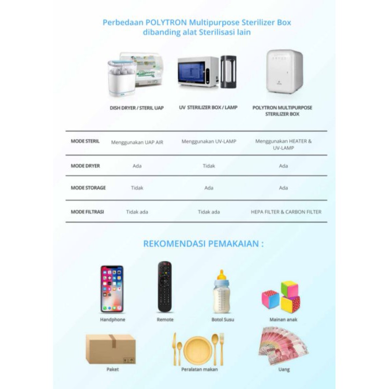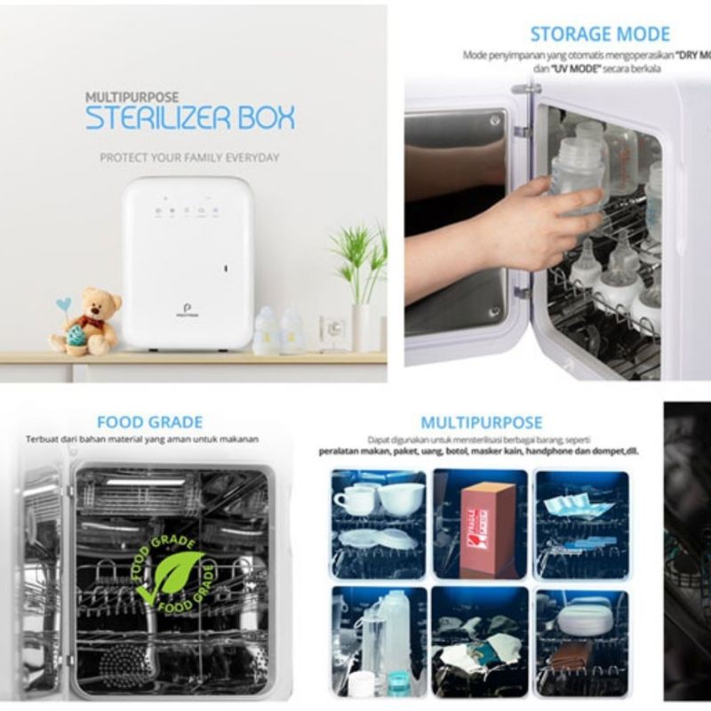 MULTIPURPOSE STERILIZER CLEANING BOX POLYTRON PUV 122W STERIL UV-C PERALATAN BAYI BABY BOTOL SUSU GARANSI RESMI ORIGINAL STERILISASI MEMBERSIHKAN KUMAN BAKTERI VIRUS PERALATAN BOTOL DOT NIPPLE PACIFIER UTENSIL SUSU MINUM SENDOK GARPU GELAS MAKAN BAYI ANAK