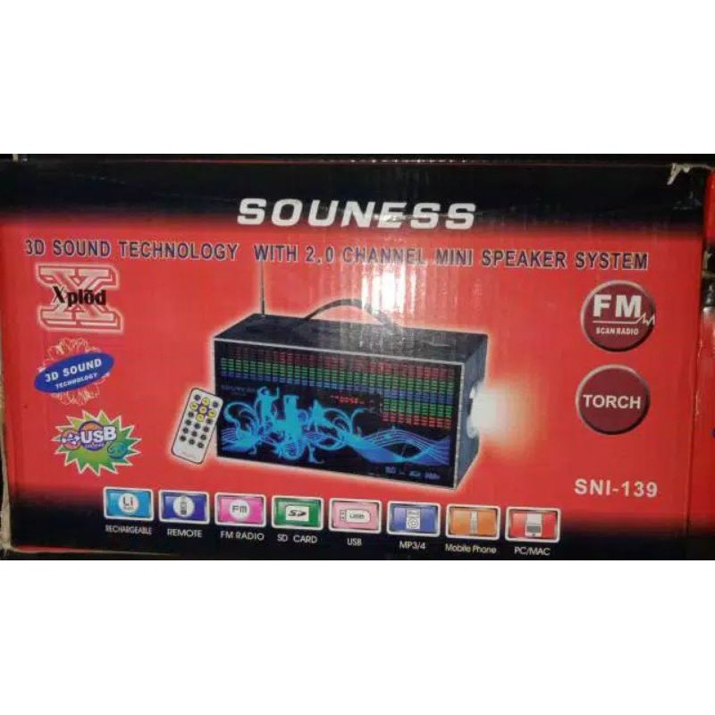 SOUNESS SNI 139 PORTABLE MINI SPEAKER KECIL USB SD CARD RECHARGEABLE TORCH ADA SENTER MP3 PLAYER