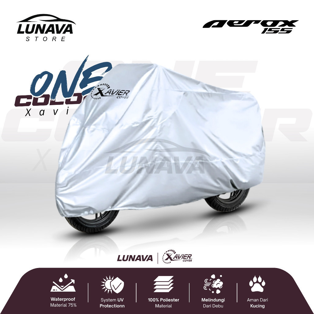 LUNAVA Xavier Cover Motor Silver Yamaha Aerox / Xavier Sarung Motor Silver Polos Waterproof Outdoor Indoor