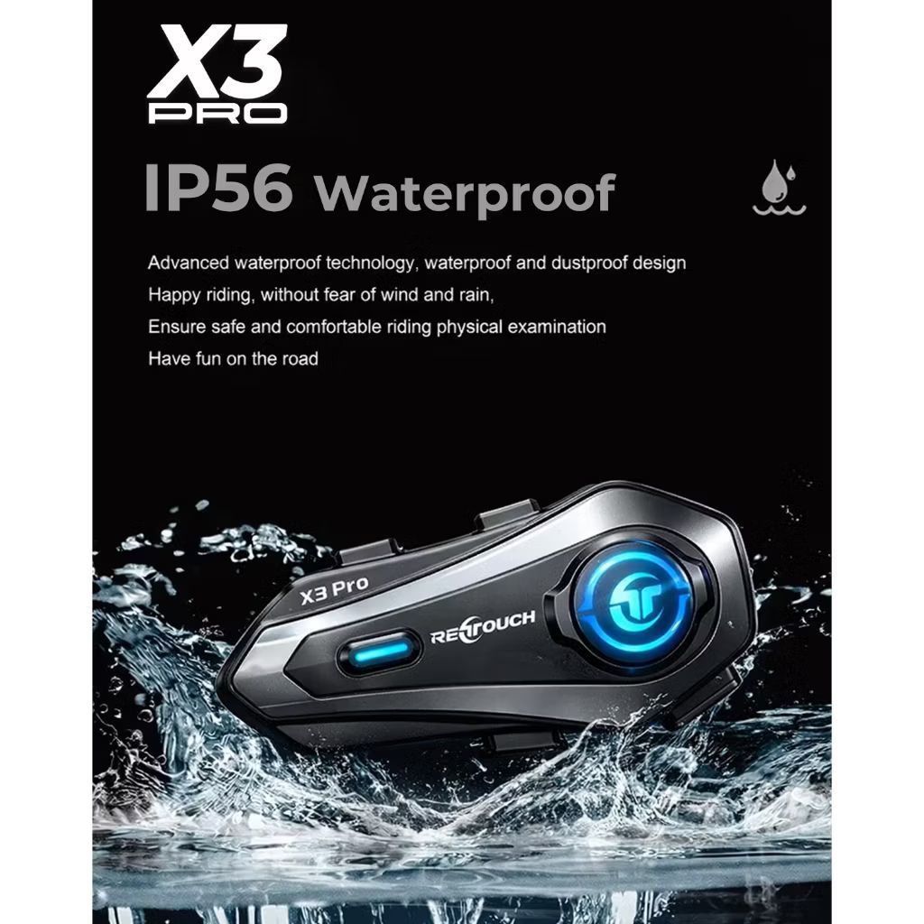Intercom Retouch X3 Pro Intercom Helm Motor Bluetooth | Interkom Helm | Waterproof IP56 Music Sharing Dual Chip Super Bass HiFi Sound 1000 mAh