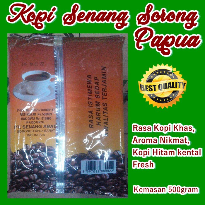 ASLII Kopi Senang Asli Sorong Papua Kemasan 500gram Minuman Bubuk Hitam Aroma Harum