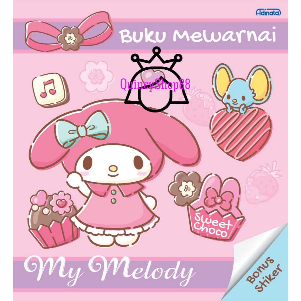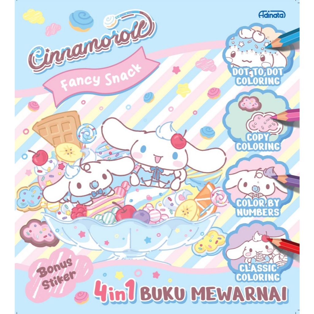 Buku Mewarnai/ Coloring Book Sanrio Cinnamoroll, Kuromi, My Melody + Bonus Stiker