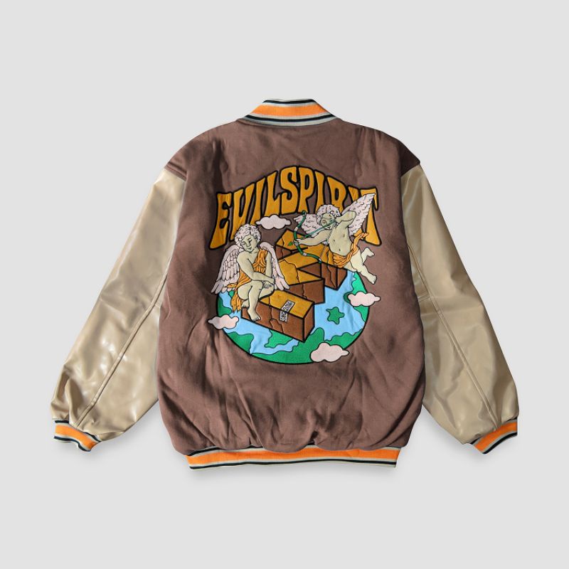 EVILSPIRIT VARSITY JACKET - ANGEL CUPID BROWN
