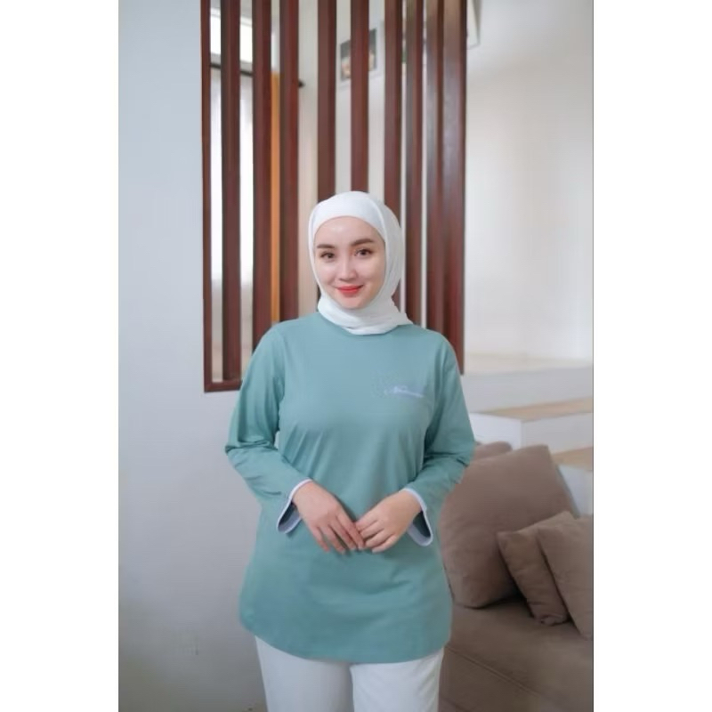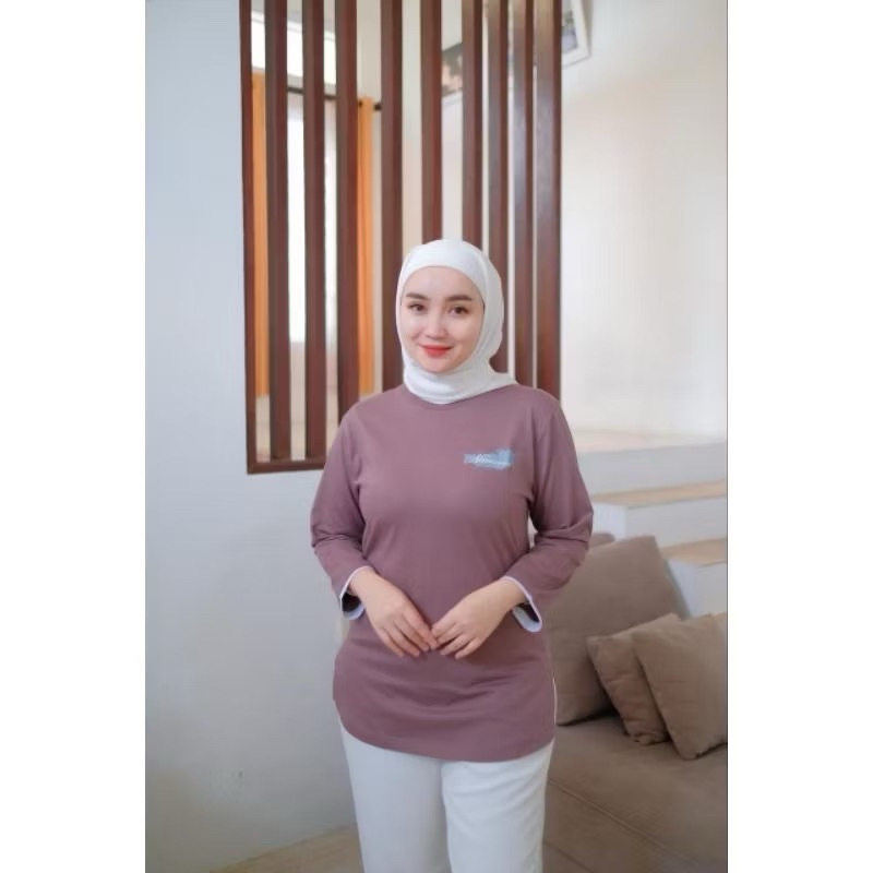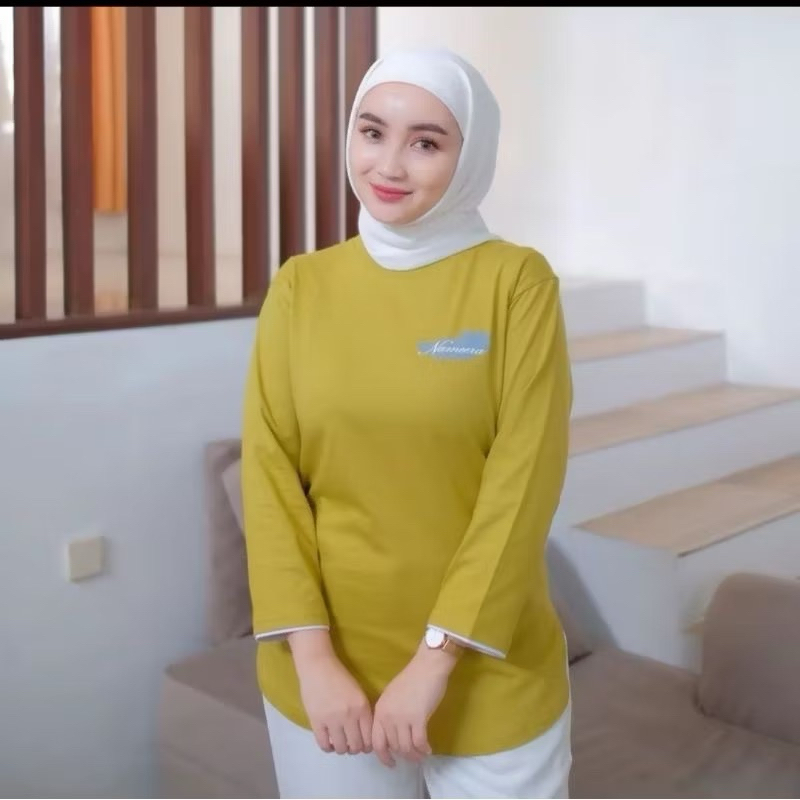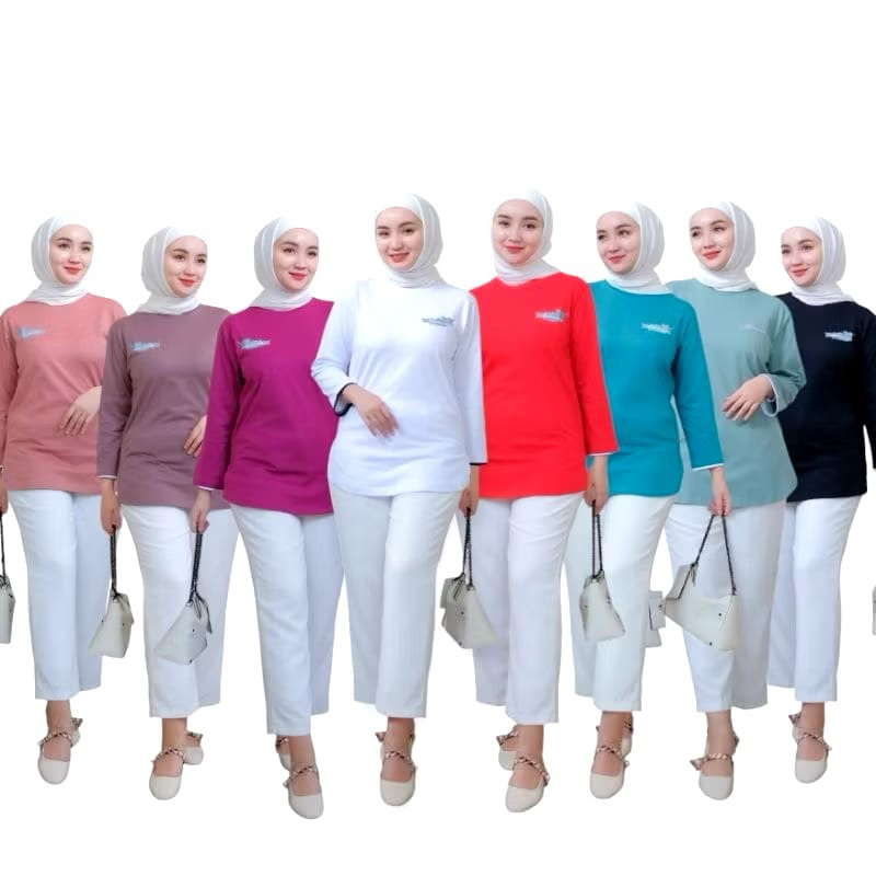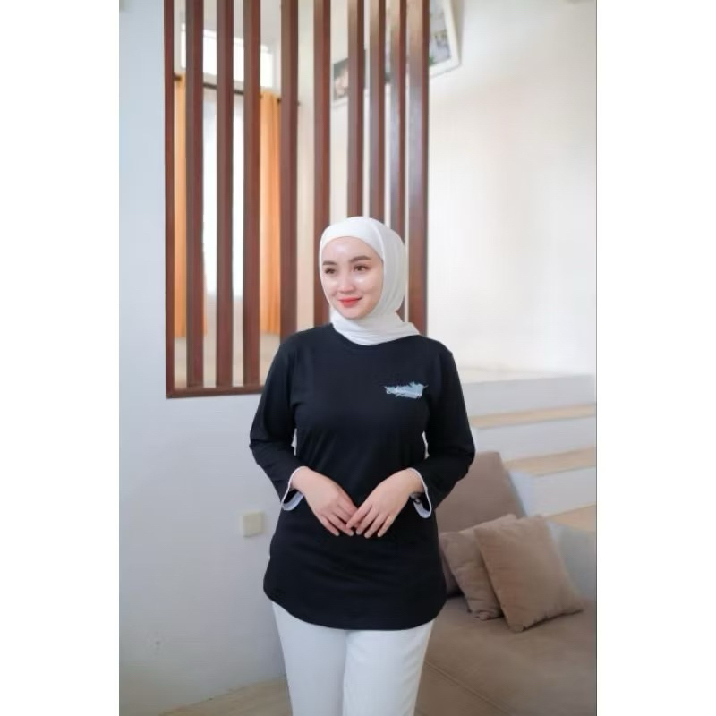SA BBC Kaos Atasan Wanita Motif Bulu Lengan 7/8 Terbaru Nameera