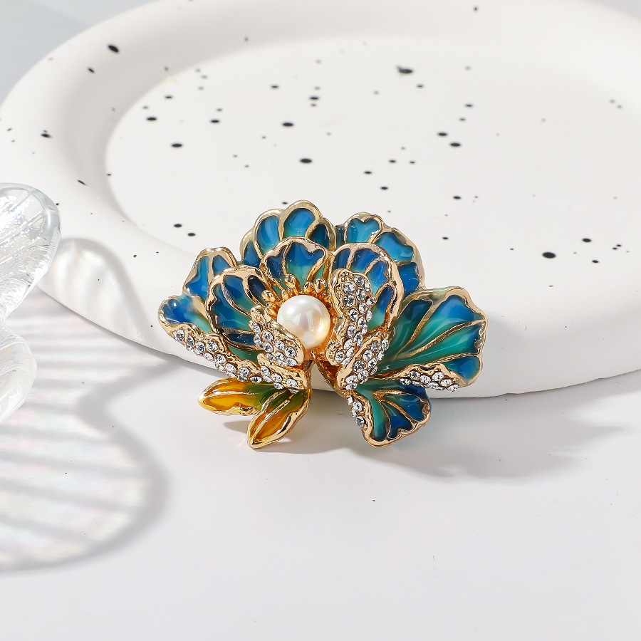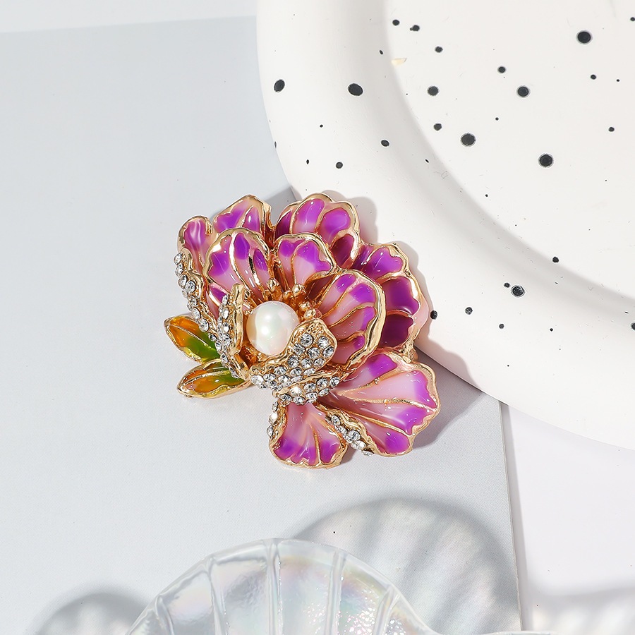 Pucigo Bros Bunga Peony Warna Color Peony Floer with Pearl Premium Brooch