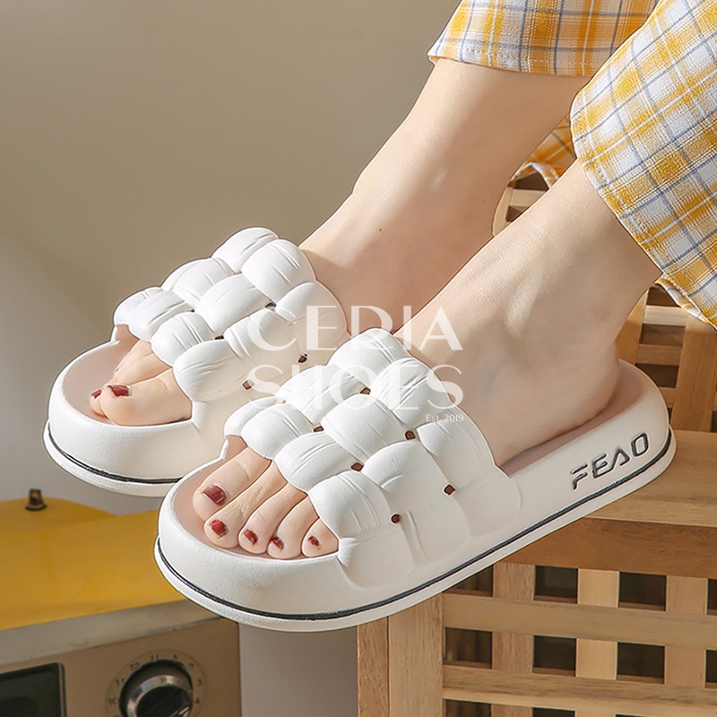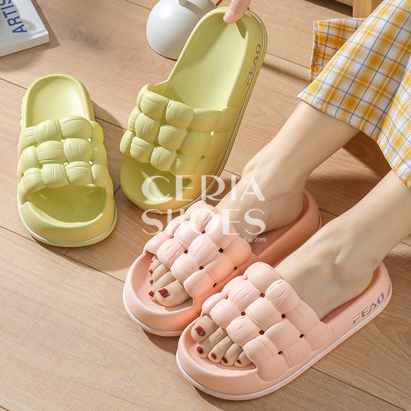 PVC Sandal Wanita Jelly Korean Import Slipper Bahan Karet Tebal Empuk Motif Webbing Super Soft 219