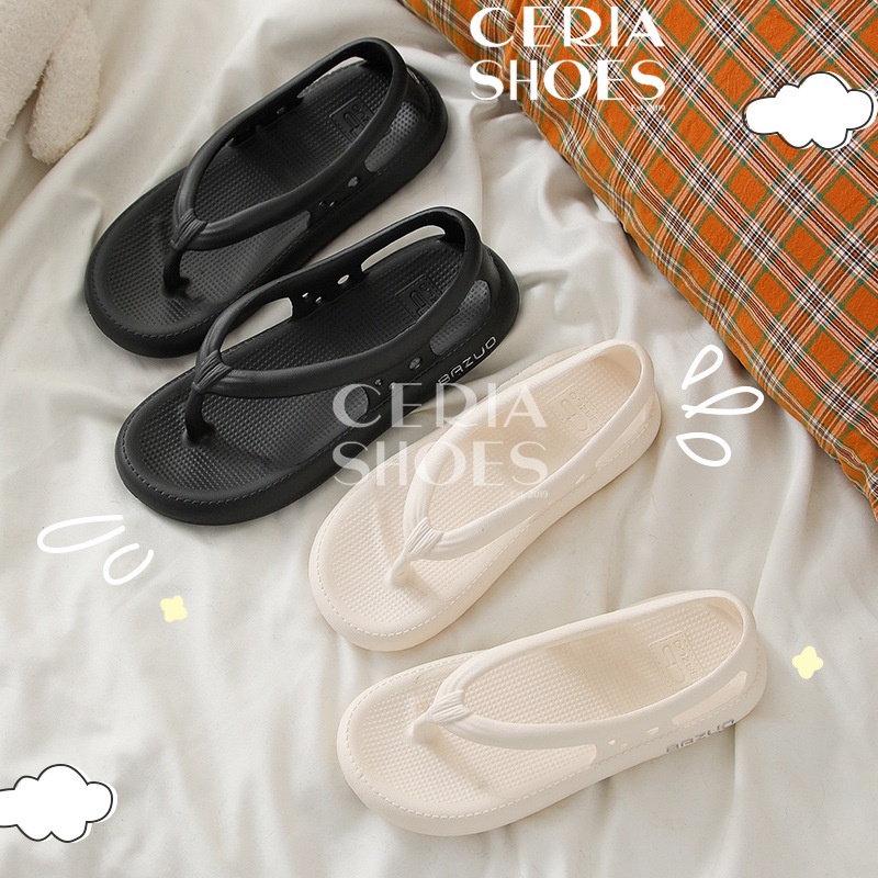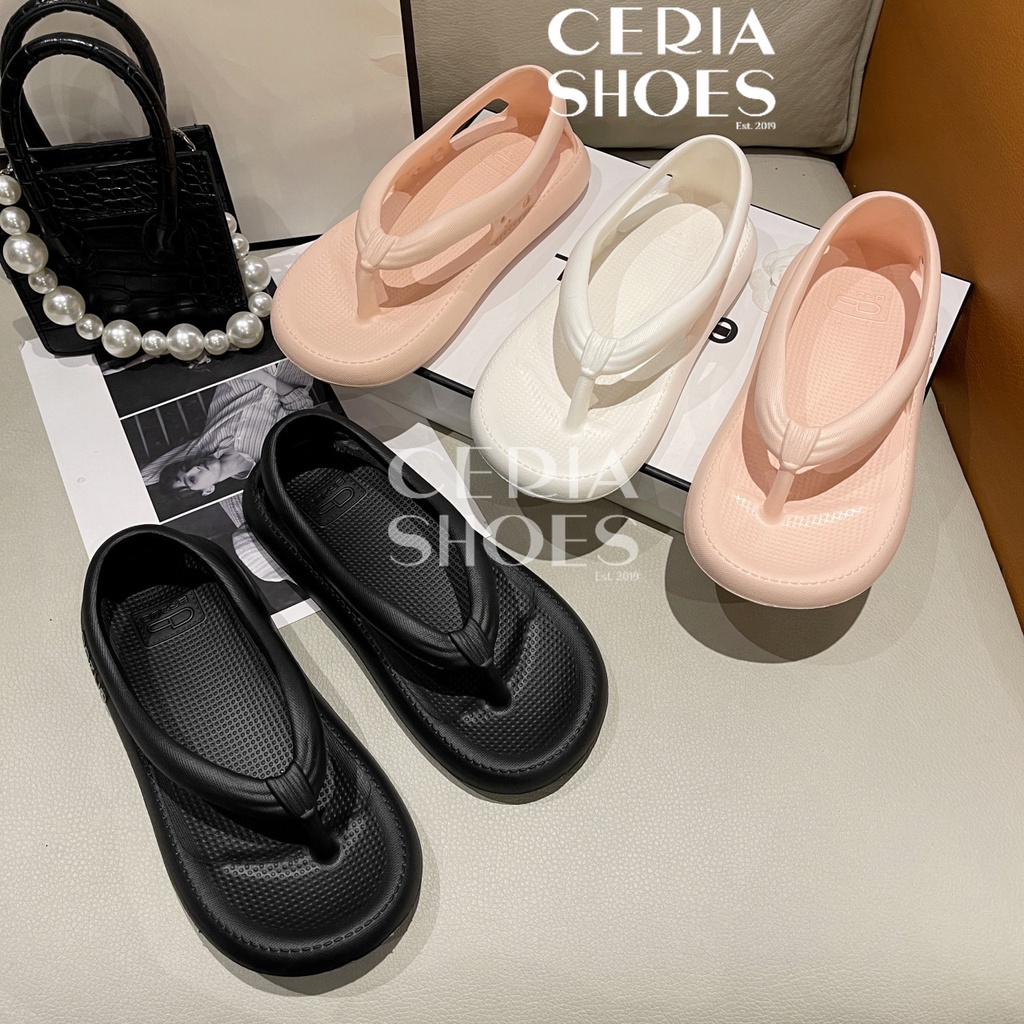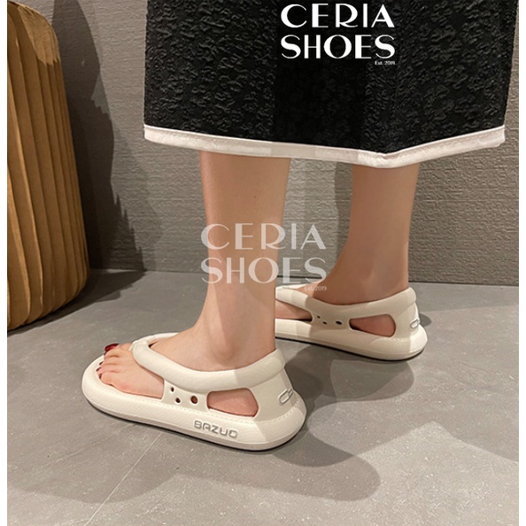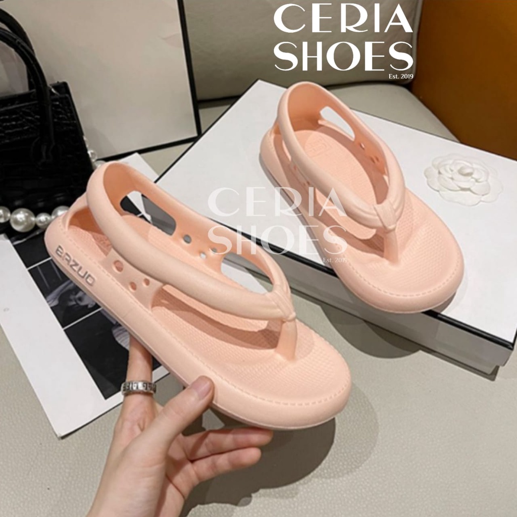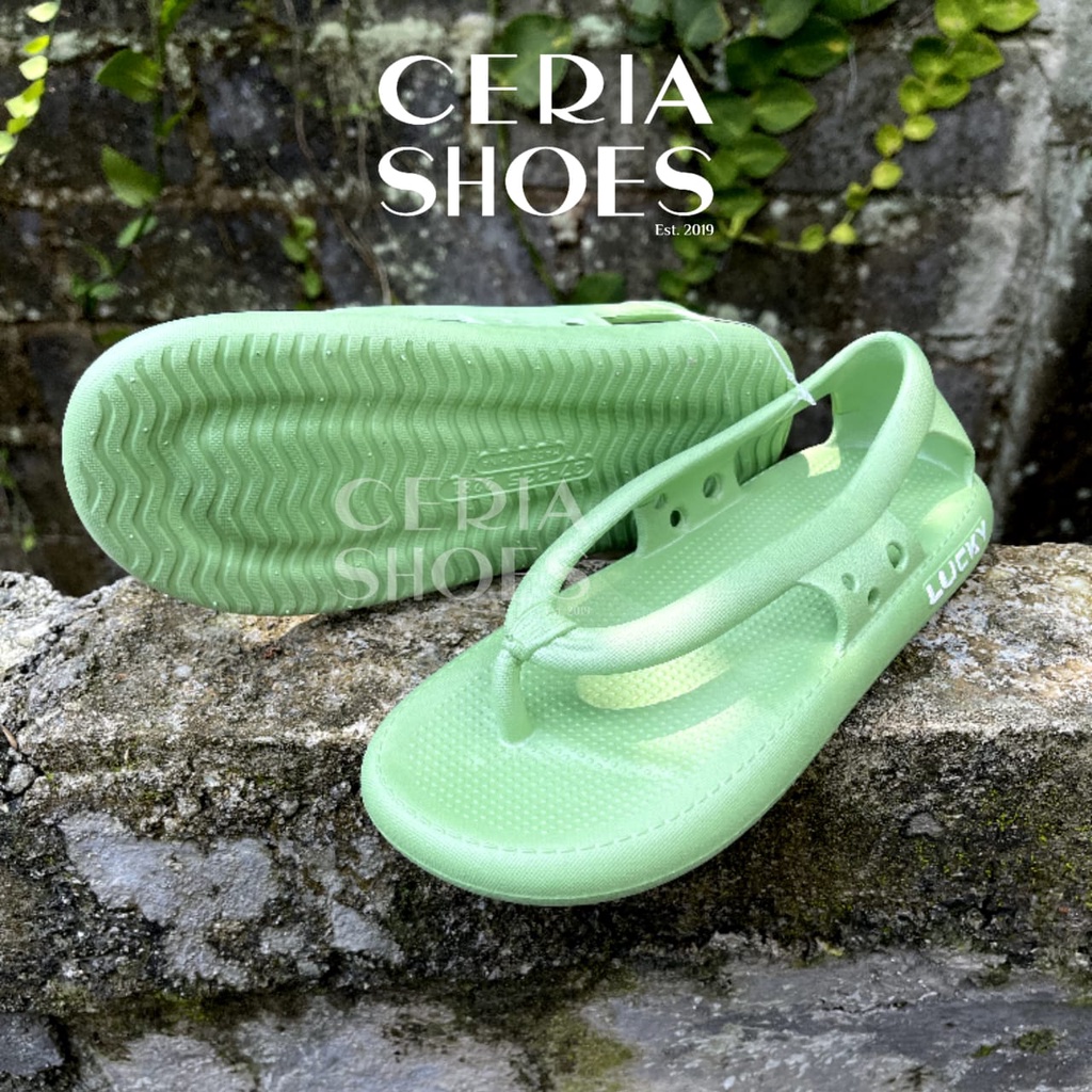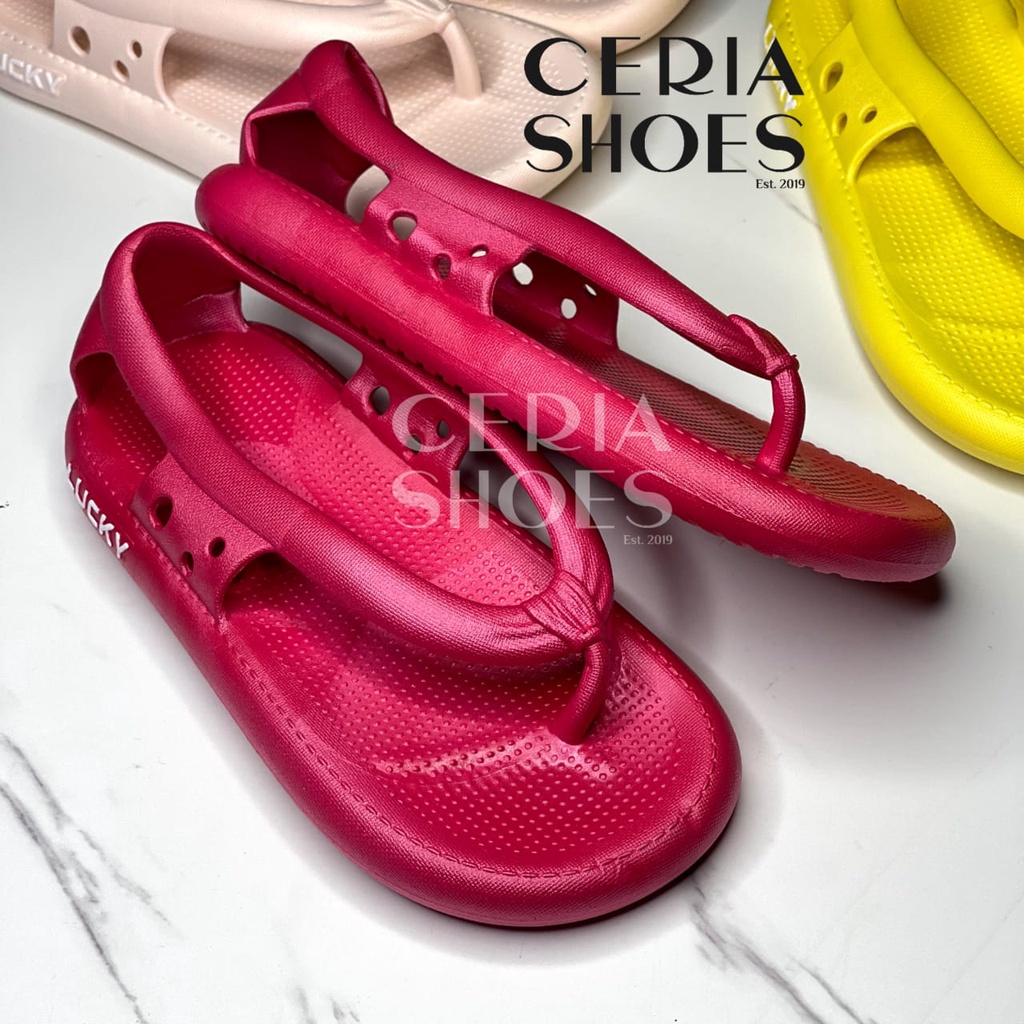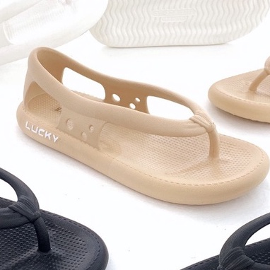 PVC Sandal Slipper Wanita Korean Import Rubber Jelly Elastic Non-Slip Karet Empuk Model Jepit Tali Belakang LUCKY
