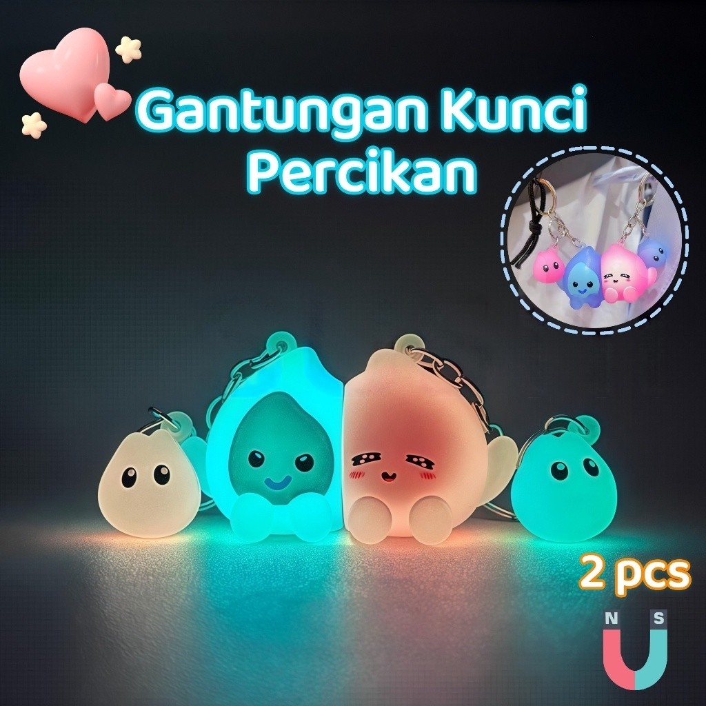 Bagus boy Keychain Gantungan Kunci 2pcs Cute Keychain Magnetic Bercahaya Glow In The Dark Gantungan Tas Aesthetic Gantungan Tas Lucu Keychain Aesthetic
