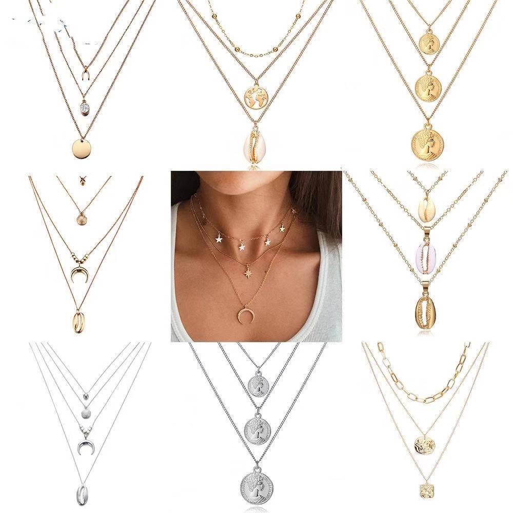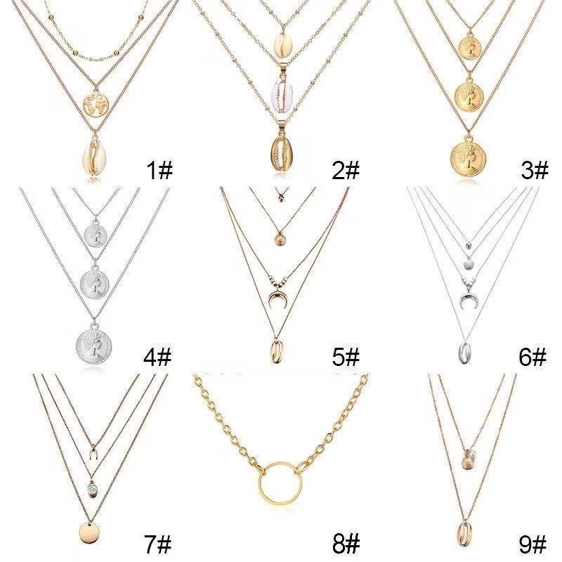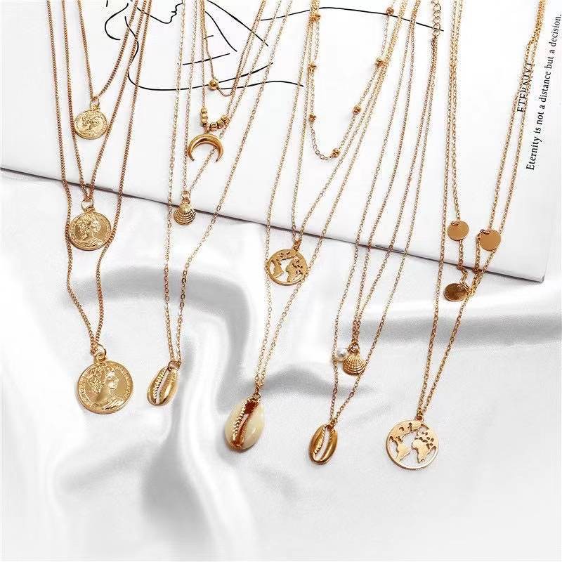 Multi-layer Fashion Metal Necklace Pendant Combination Clavicular Chain Beach Shell Women Kalung