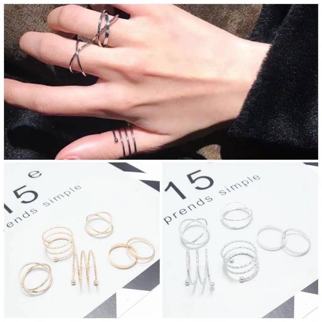 6Pcs / Set Cincin Aneka Bentuk Warna Antik Gaya Vintage Untuk Wanita