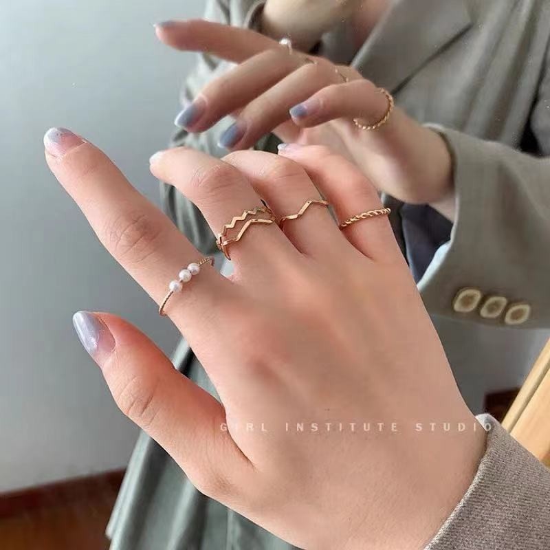 Sayishop 5PCS/SET Cincin wanita kasual mutiara fashion