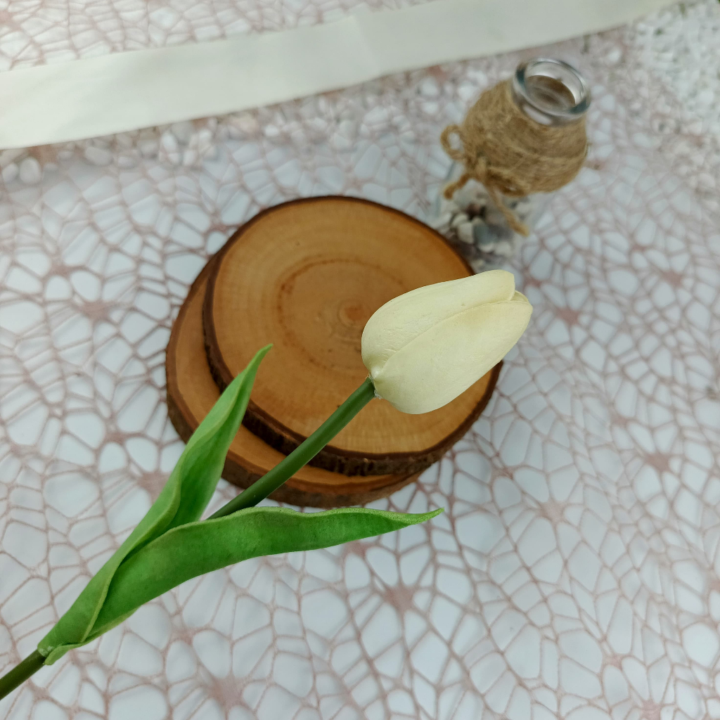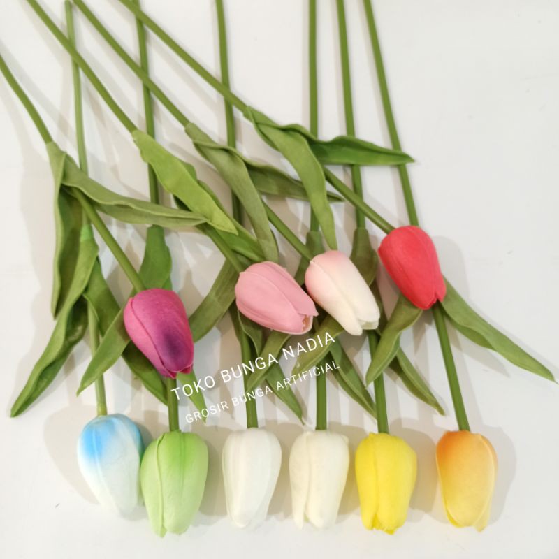 Bunga Tulip Latex Artificial Dekorasi Rumah Hiasan Mahar Buket Plastik Wedding Pernikahan Daun A1N53