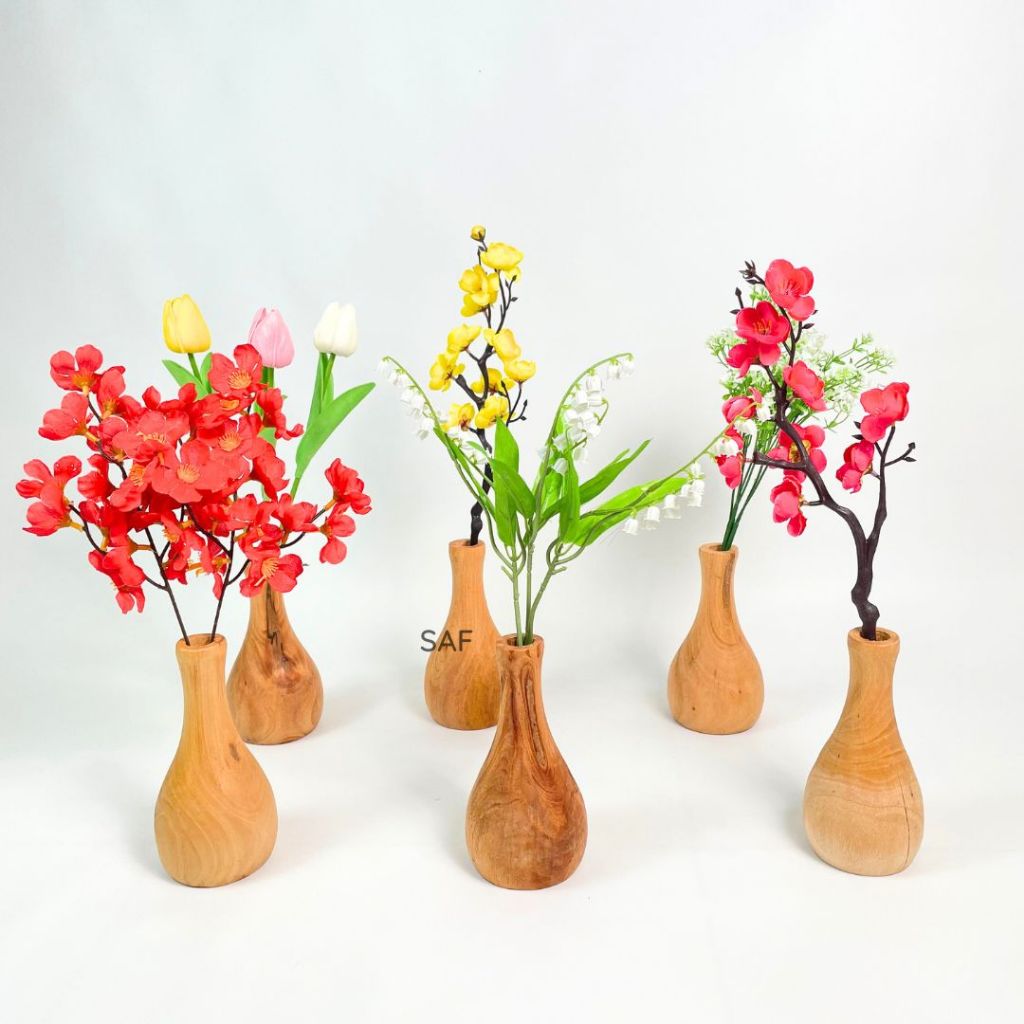 SAF Paket Vas Bunga kayu / Dekorasi meja bunga artifcial monstera
