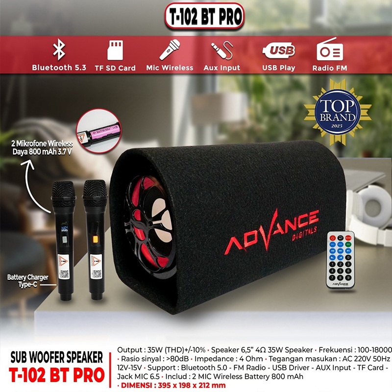 Advance salon aktif bluetooth full bass T-102BT PRO speaker subwoofer 6.5inch speaker bluetooth bass portable untuk mobil speaker karaoke bluetooth super bass Bonus 2 mic Garansi resmi 1 tahun