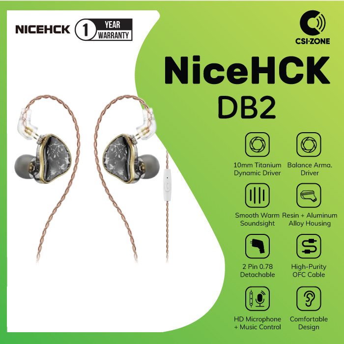 NiceHCK DB2 1DD+1BA Hybrid Driver In Ear Monitor Earphone With Mic