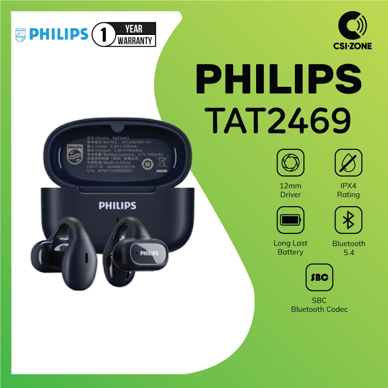 Philips TAT2469 12mm Driver Bluetooth Open Ear True Wireless TWS